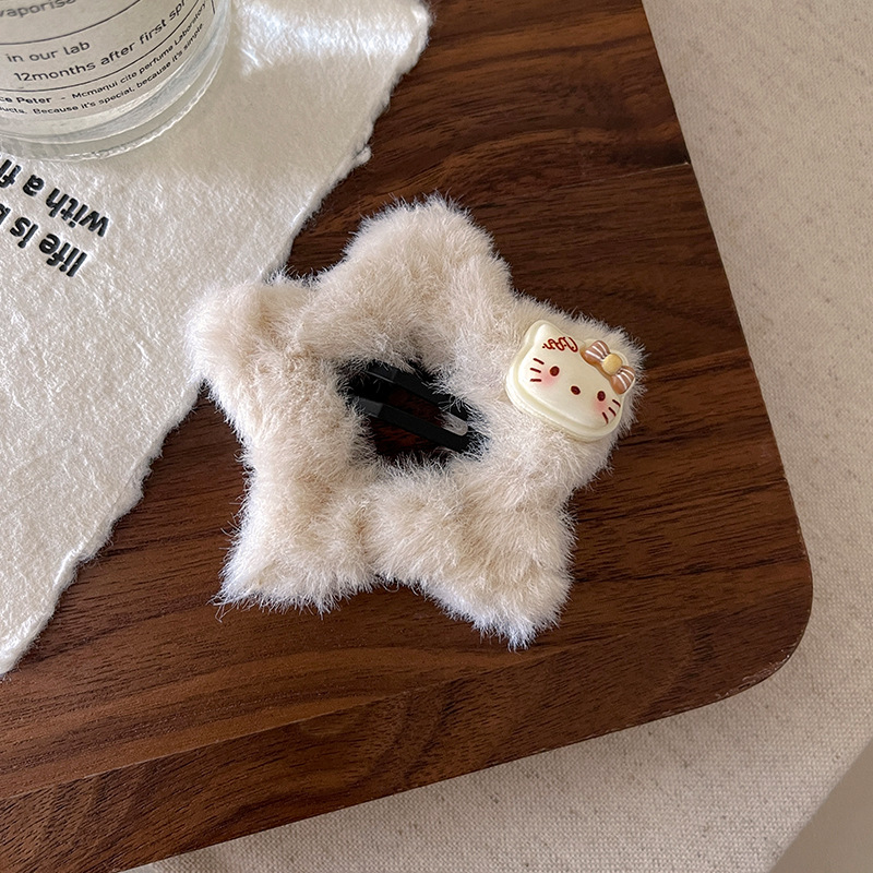 푹신한 귀여운 KT 고양이 스타 BB 클립 소녀 가을과 겨울 봉제 다섯개 별 사이드 클립 스위트 헤어 액세서리 헤어핀