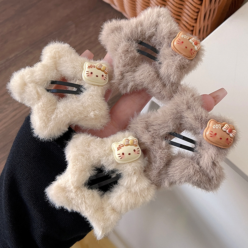 푹신한 귀여운 KT 고양이 스타 BB 클립 소녀 가을과 겨울 봉제 다섯개 별 사이드 클립 스위트 헤어 액세서리 헤어핀스토어 가기