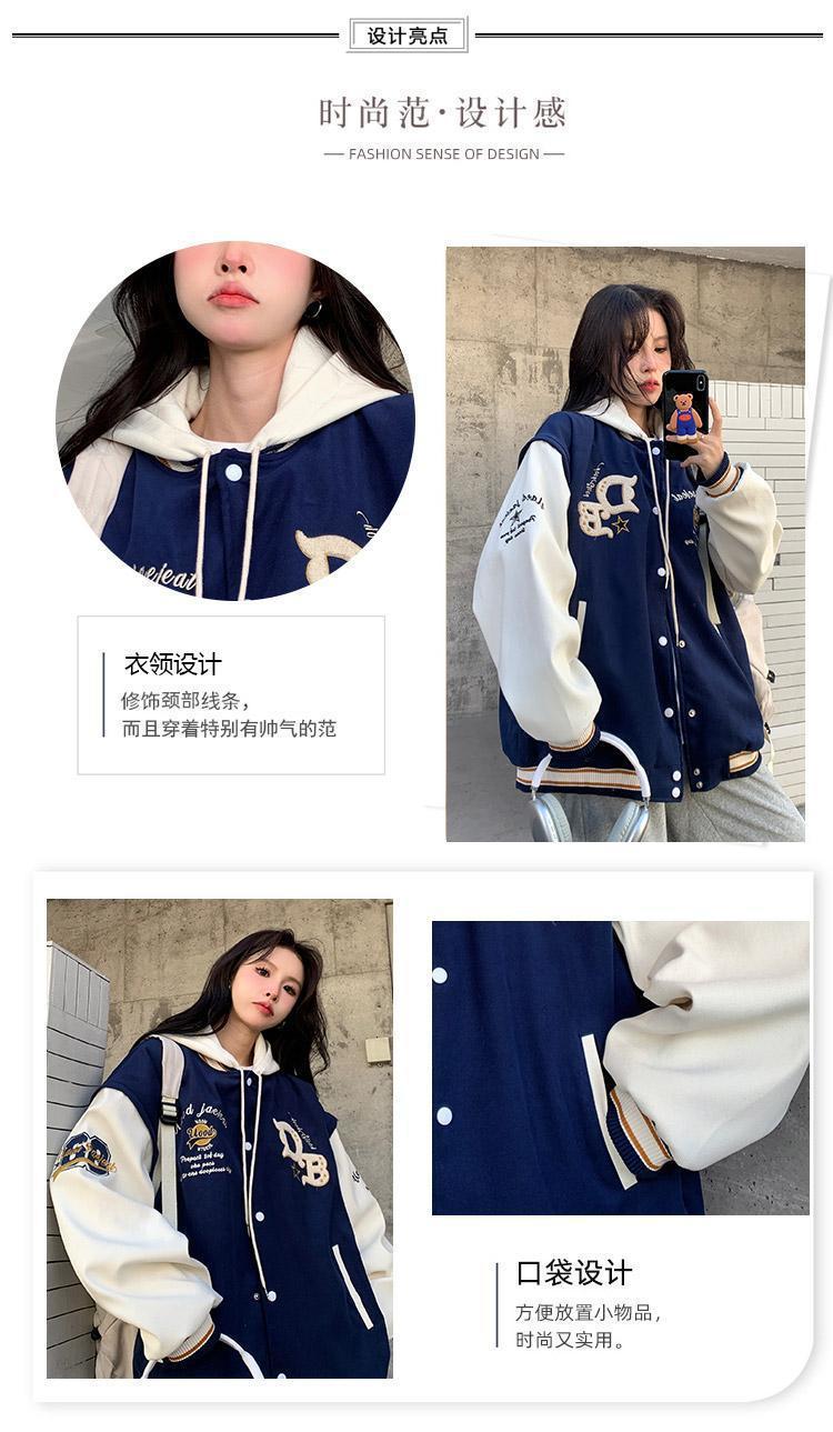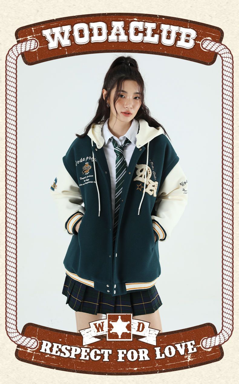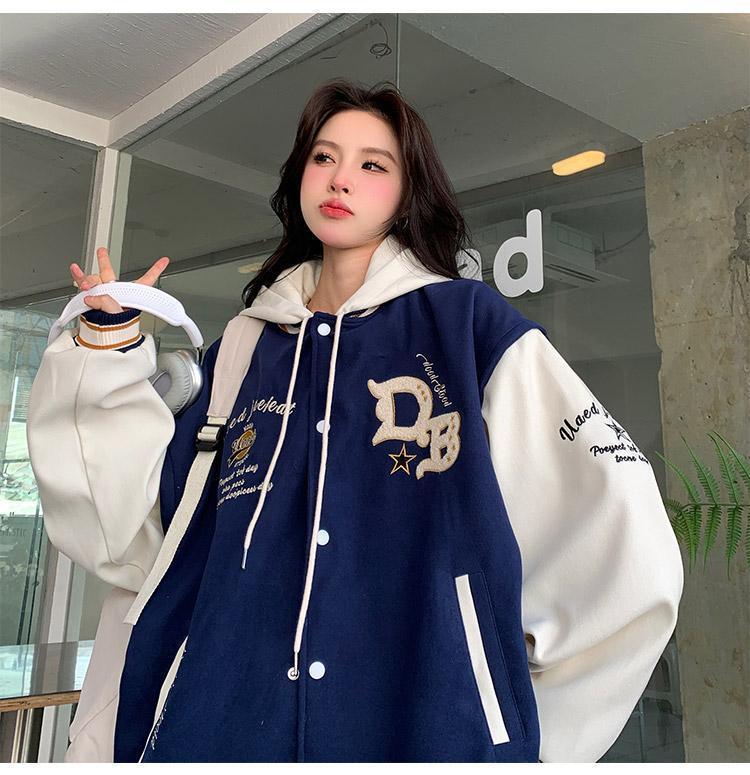 미국 복고풍 야구 세트 코트 여자 2024 새로운 가을과 겨울 특대 학생 느슨한 후드 재킷스토어 가기