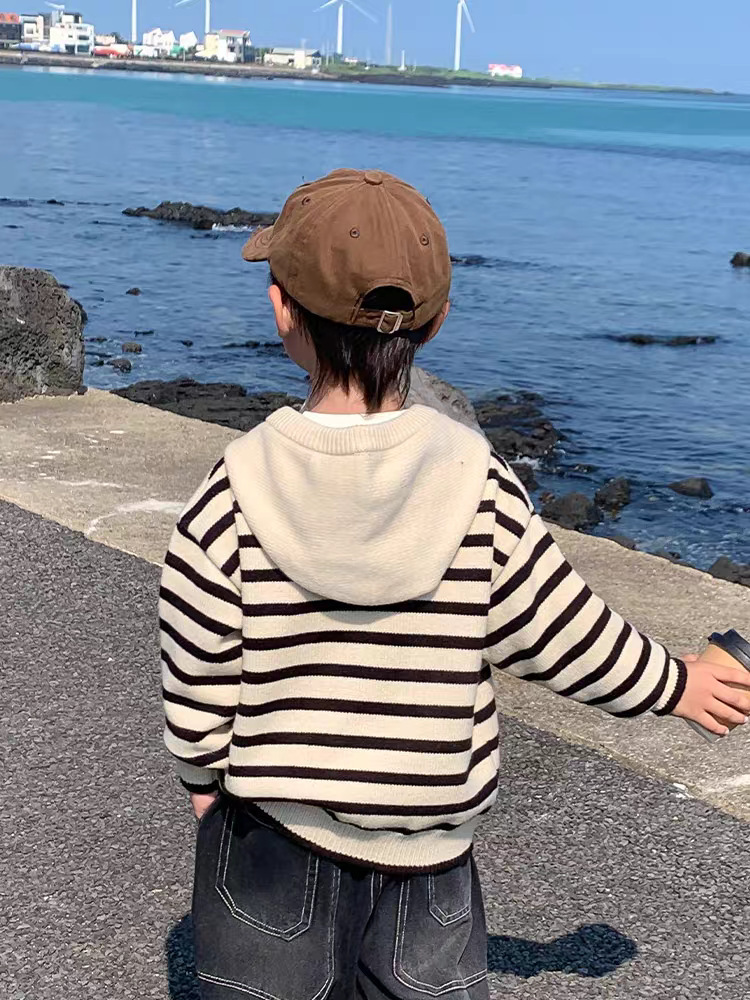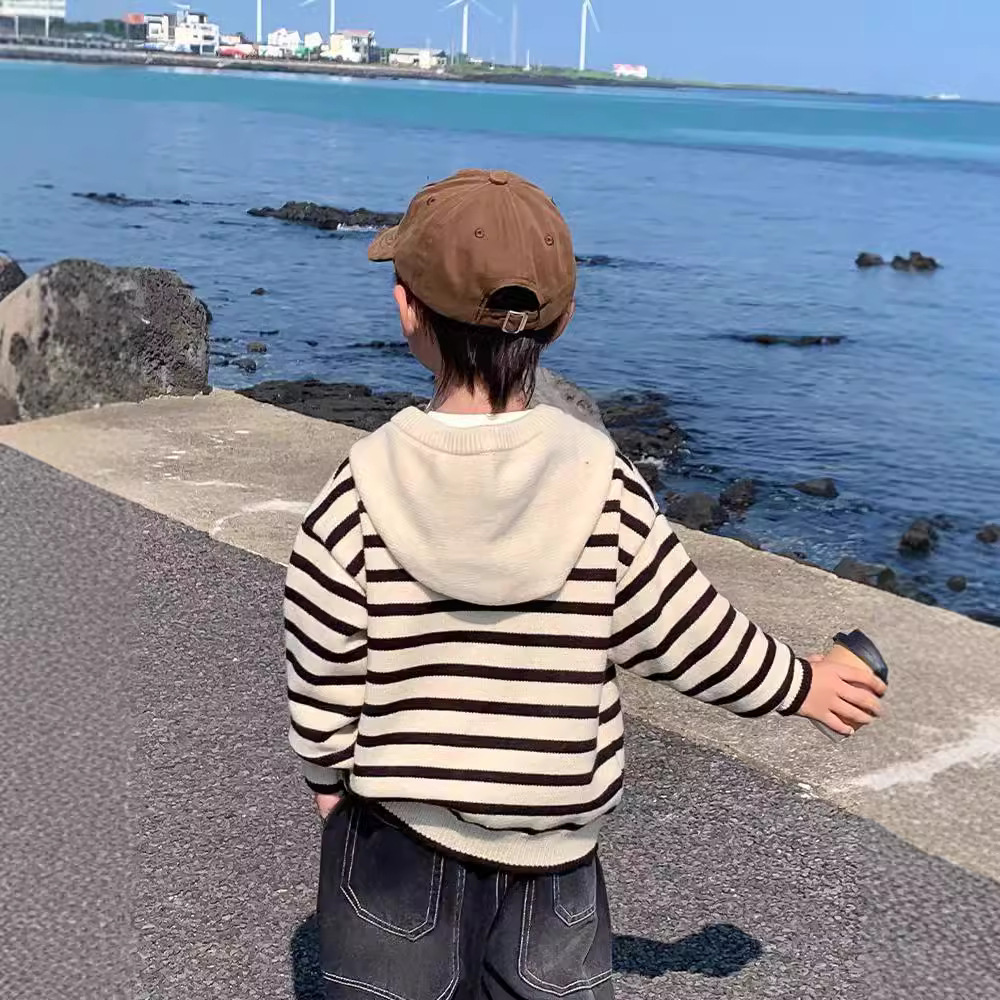 아기 스웨터 봄과 가을 소년의 니트웨어 어린이 가을 후드 탑 어린이 코트 얇은 소년의 가을 착용스토어 가기