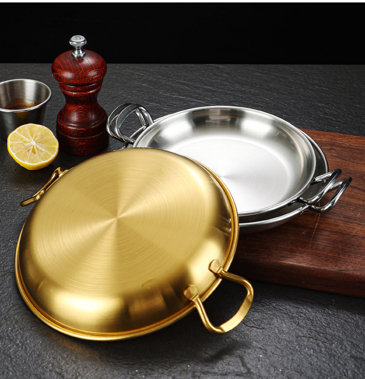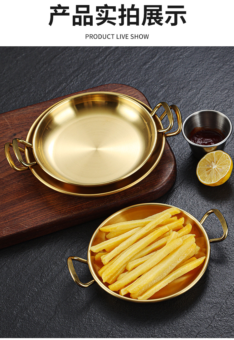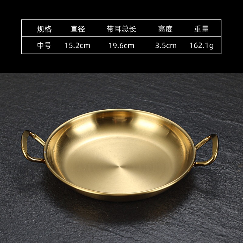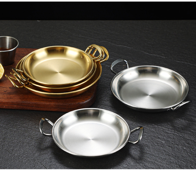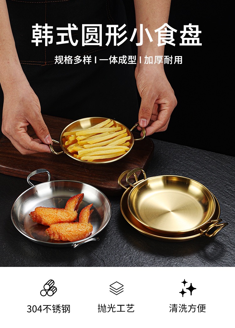 한국식 304 스테인레스 스틸 바이노럴 스낵 플레이트 레스토랑 샐러드 플레이트 차가운 접시 캔디 플레이트 디저트 트레이 디스크 골드