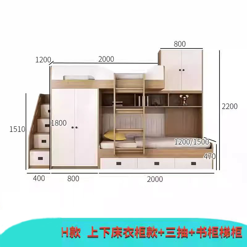 옷장 콤비네이션 침대 소형 아파트 침대 높고 낮은 침대 어린이 침대 어머니 침대