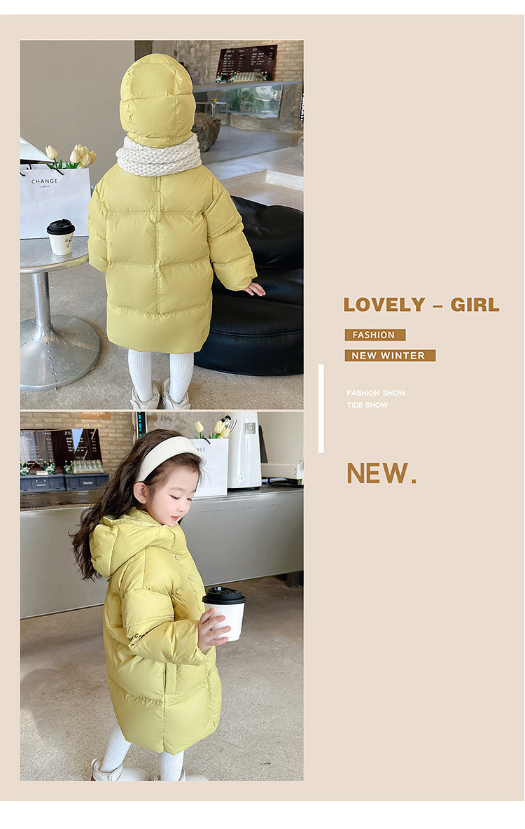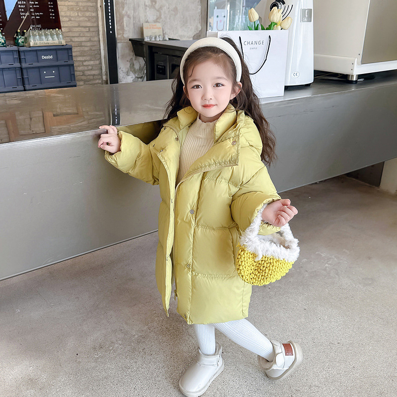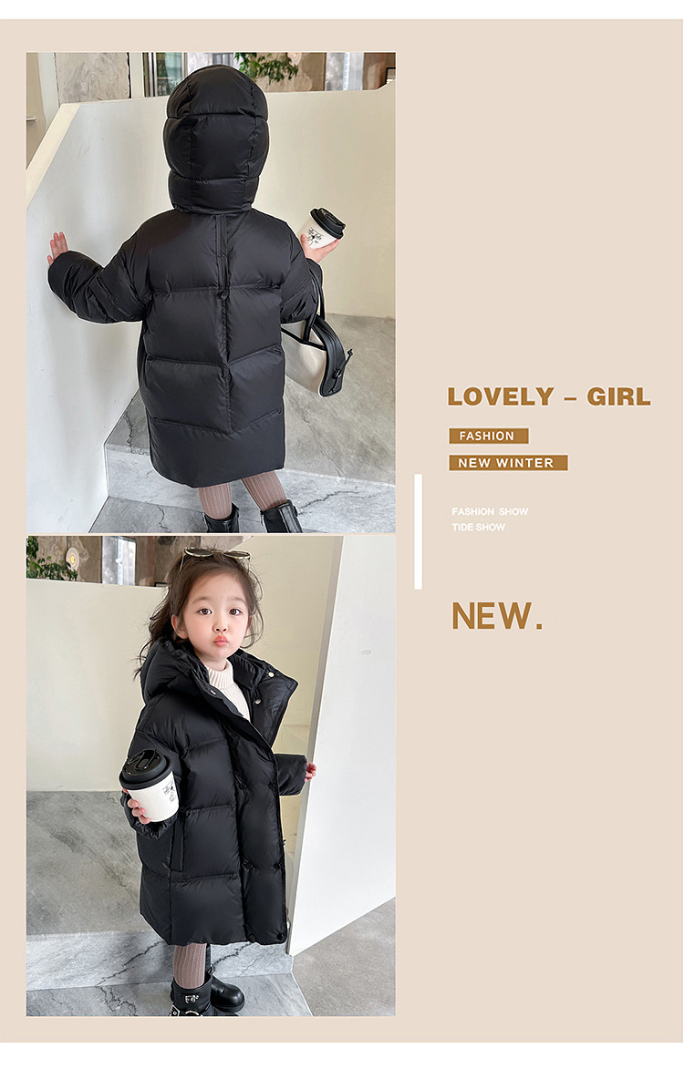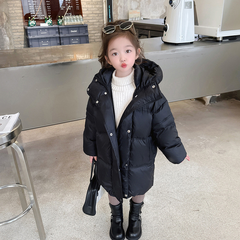 여자 다운 재킷 흰 오리 겨울 2024 새로운 어린이 긴 기모 두꺼운 한국 스타일 후드 자켓 트렌디스토어 가기