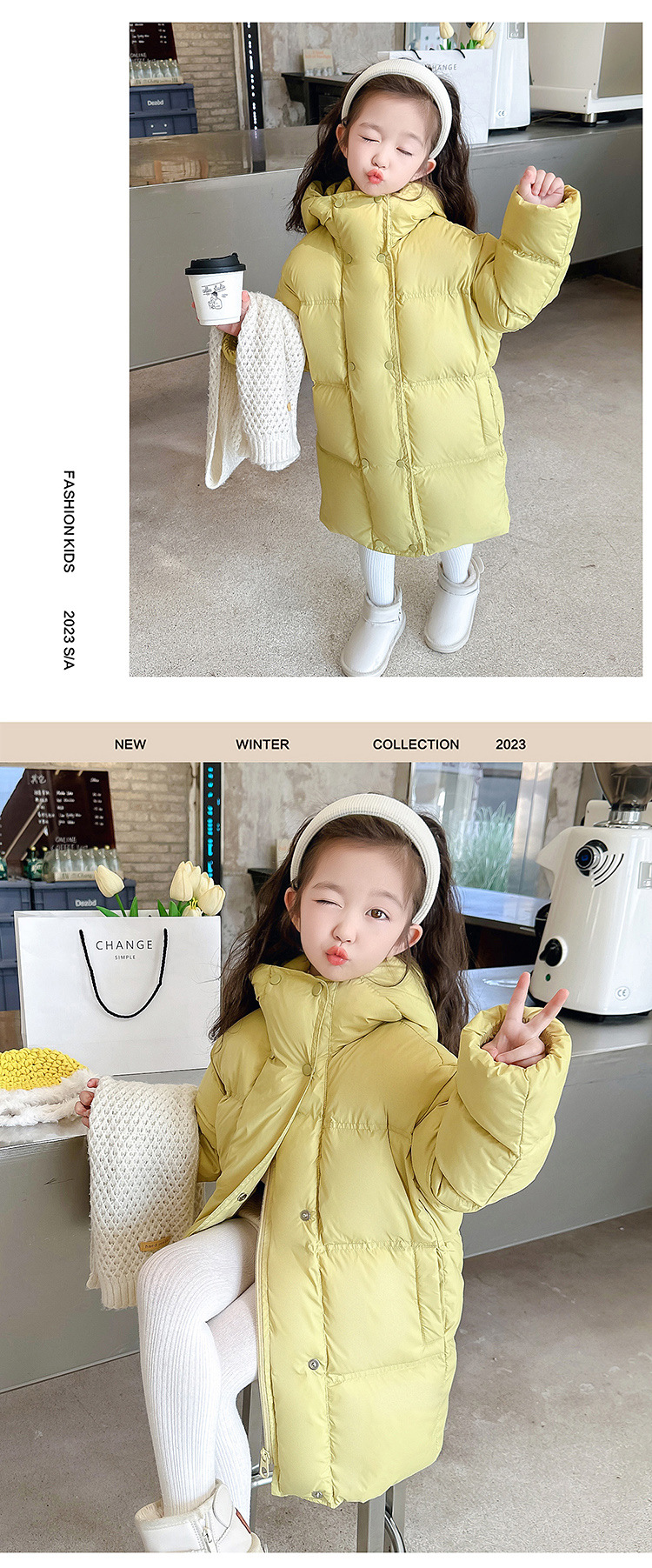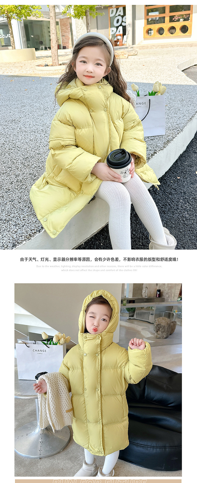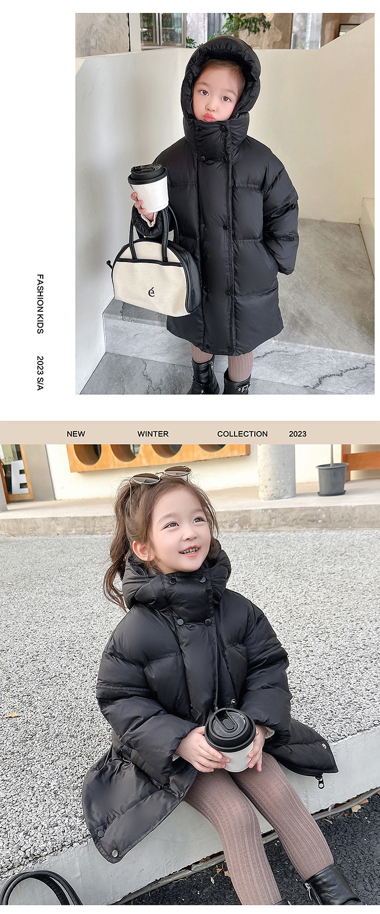 여자 다운 재킷 흰 오리 겨울 2024 새로운 어린이 긴 기모 두꺼운 한국 스타일 후드 자켓 트렌디스토어 가기