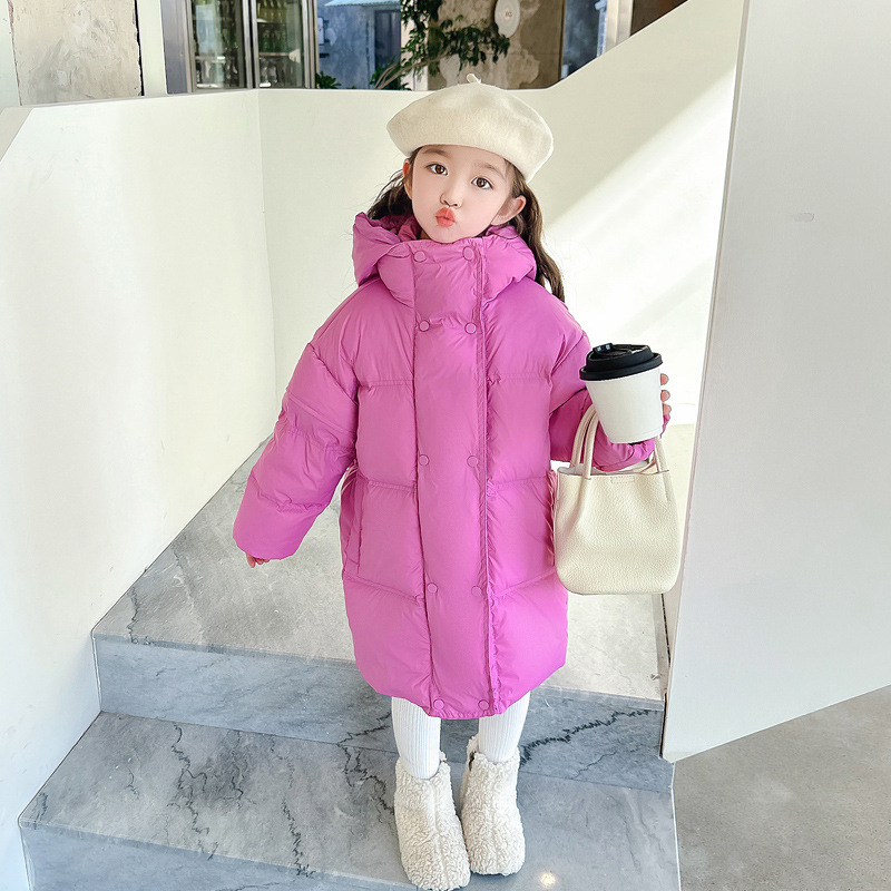 여자 다운 재킷 흰 오리 겨울 2024 새로운 어린이 긴 기모 두꺼운 한국 스타일 후드 자켓 트렌디