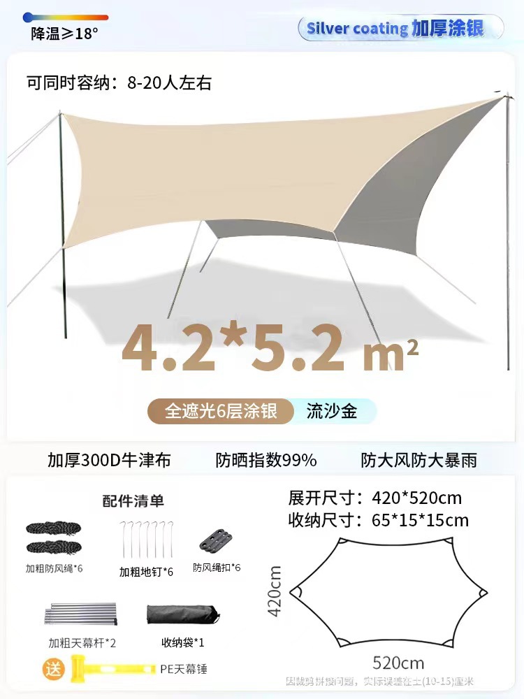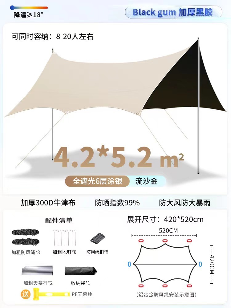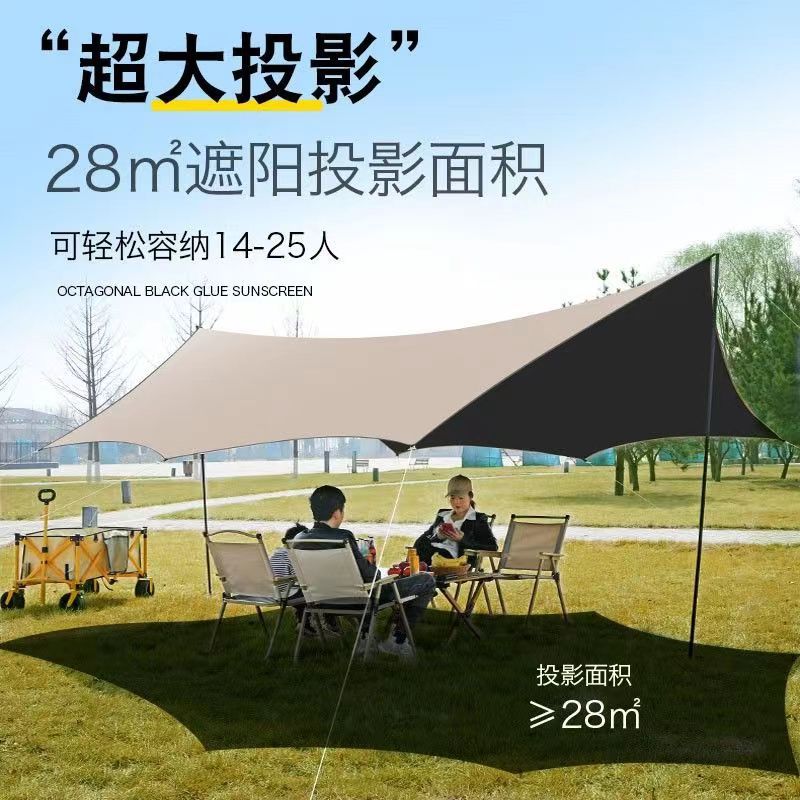 검은 고무 캐노피 텐트 야외 휴대용 대형 캠핑 장비 캠핑 피크닉 태양 보호 팔각형 나비 차양