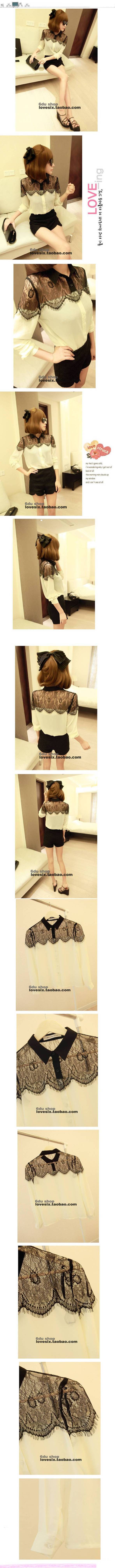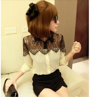 1191 유럽과 미국 스타일의 새로운 가을 검은 레이스 작은 스타일 긴 소매 쉬폰 셔츠스토어 가기