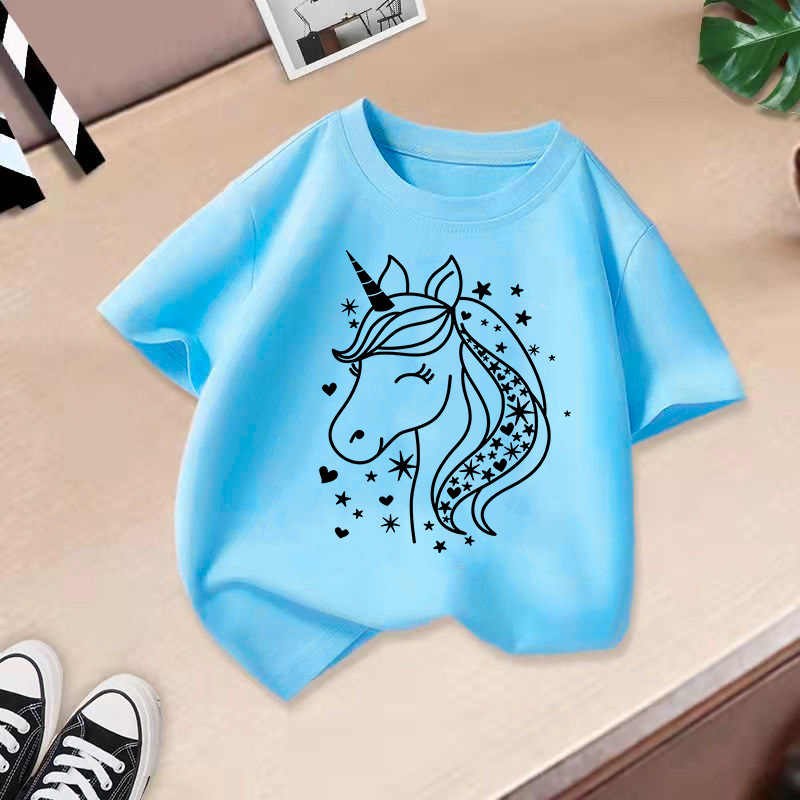 • 라이트 블루 블랙 유니콘 반소매