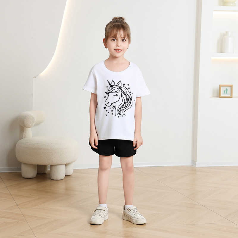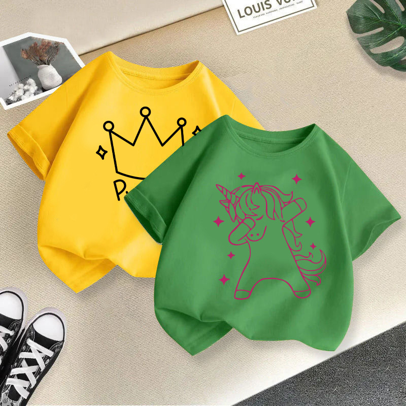 국경 간 소녀 티셔츠 어린이 새 여름 서양식 반팔 올 매치 탑 중 · 대형 어린이 여름 유행 대외 무역 아동복스토어 가기