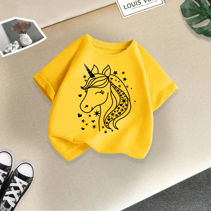 • 노란색 빨간색 유니콘 반소매