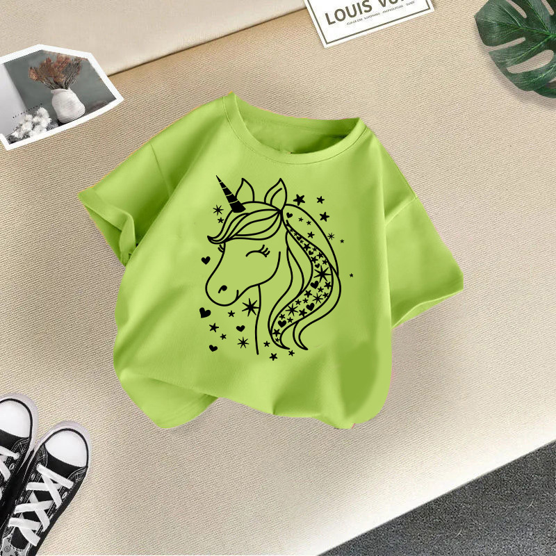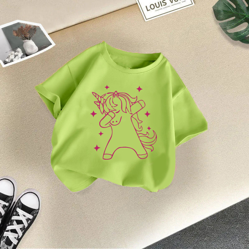 • 잔디 녹색 빨간색 유니콘 반소매