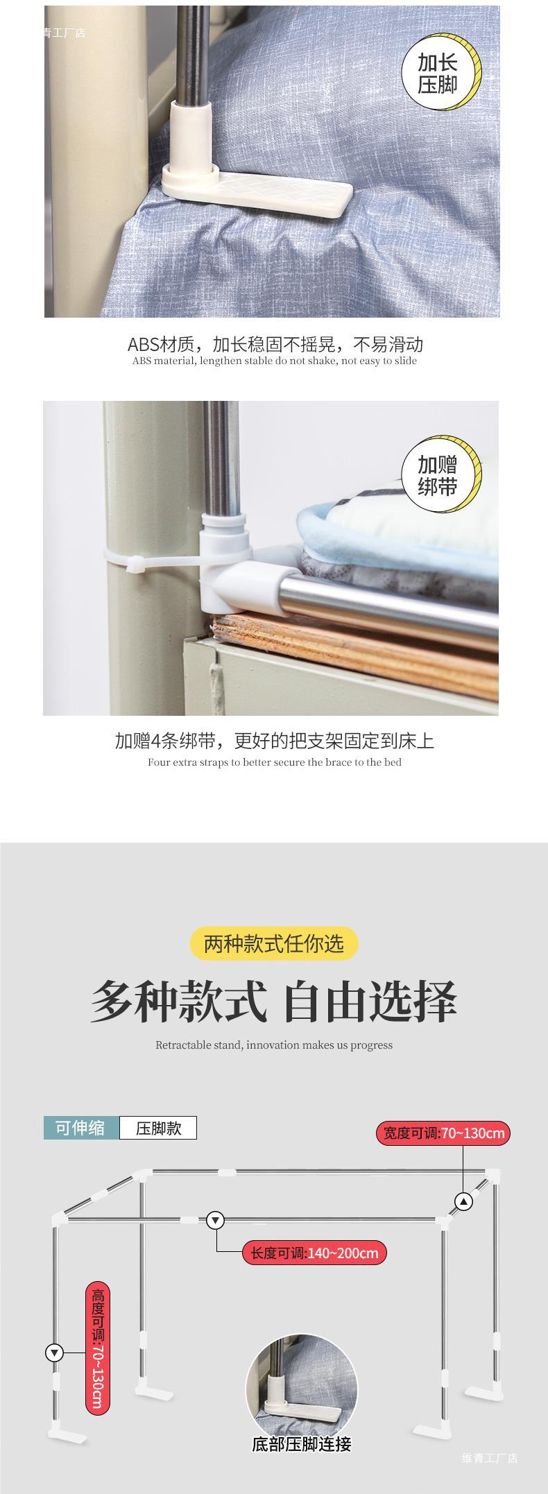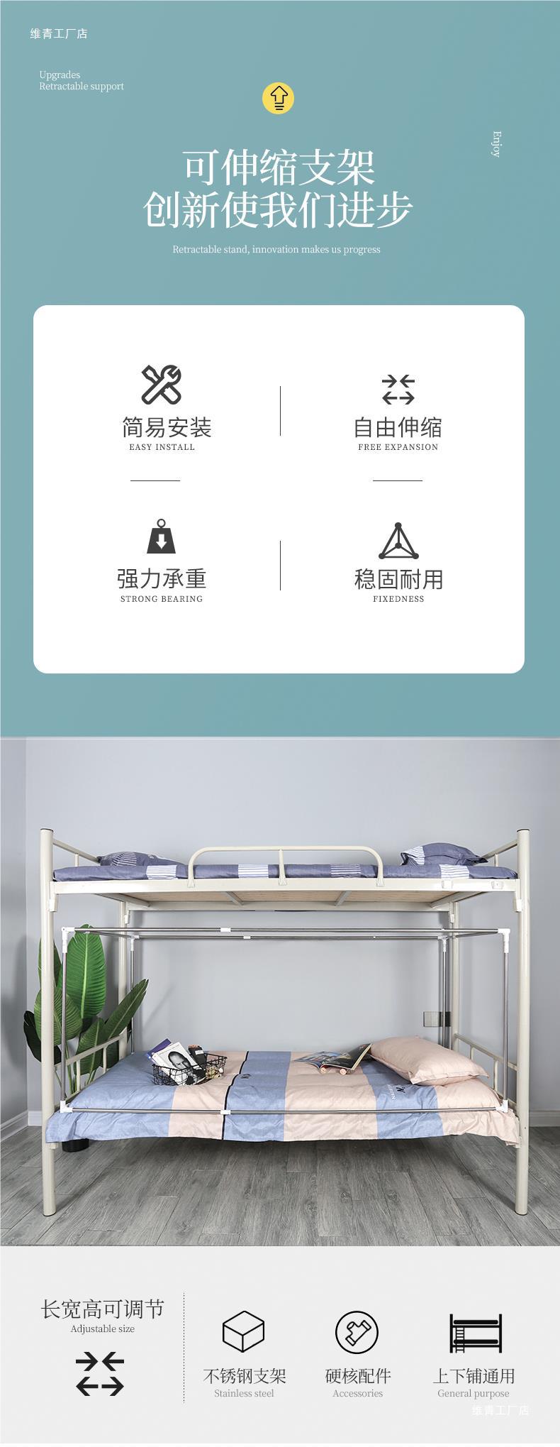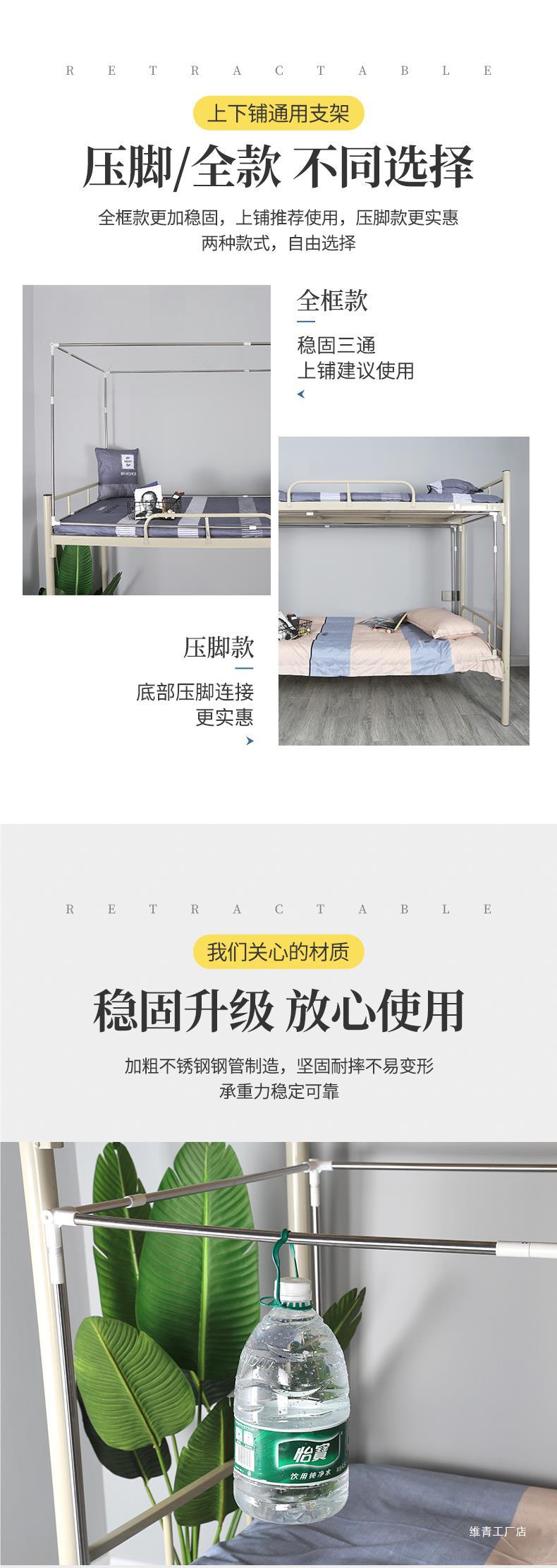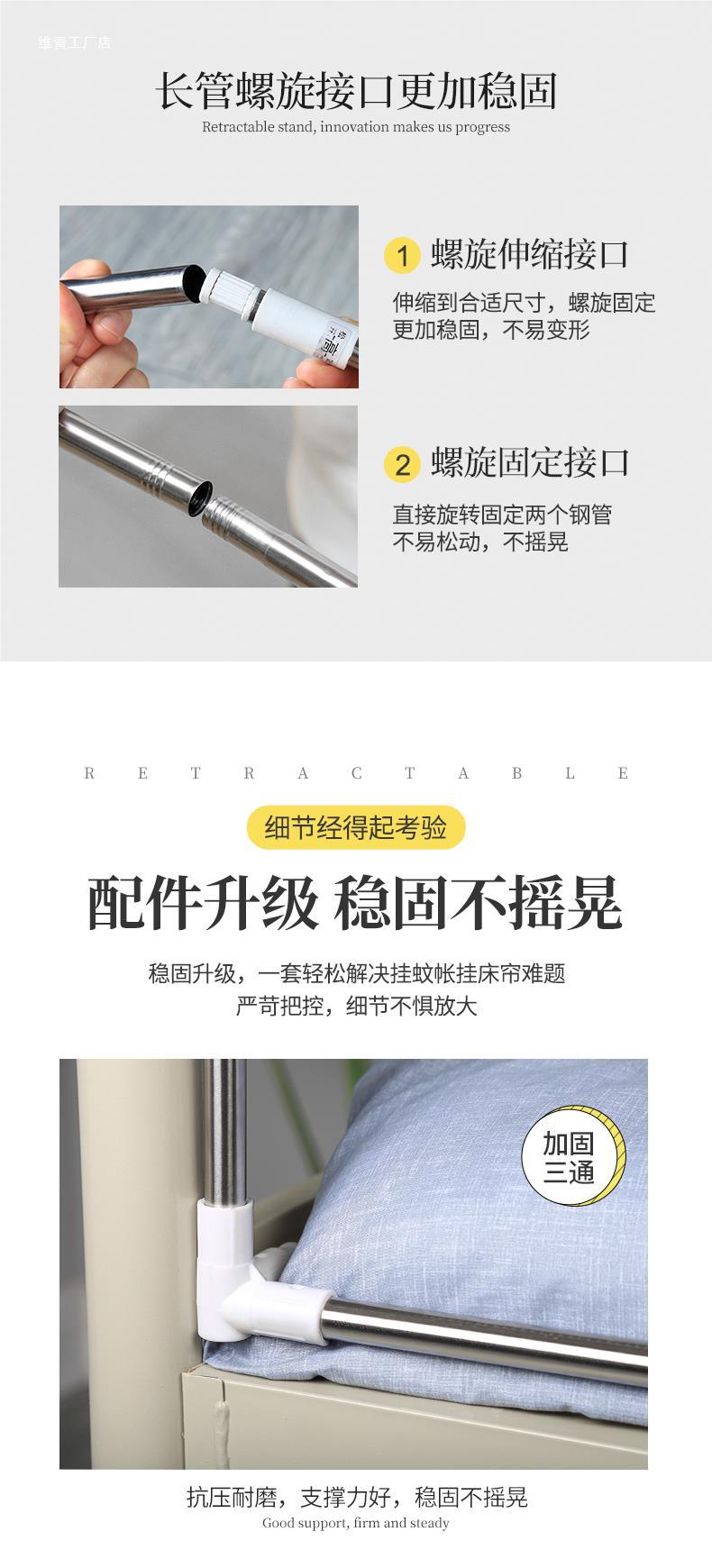 [텔레스코픽 지원] 대학생 기숙사 모기장 침대 커튼 지원 싱글 침대 침실 이층 스테인레스 스틸 폴