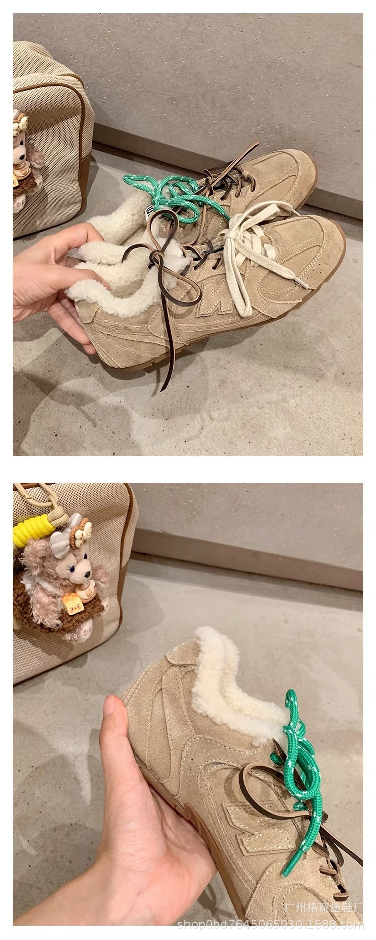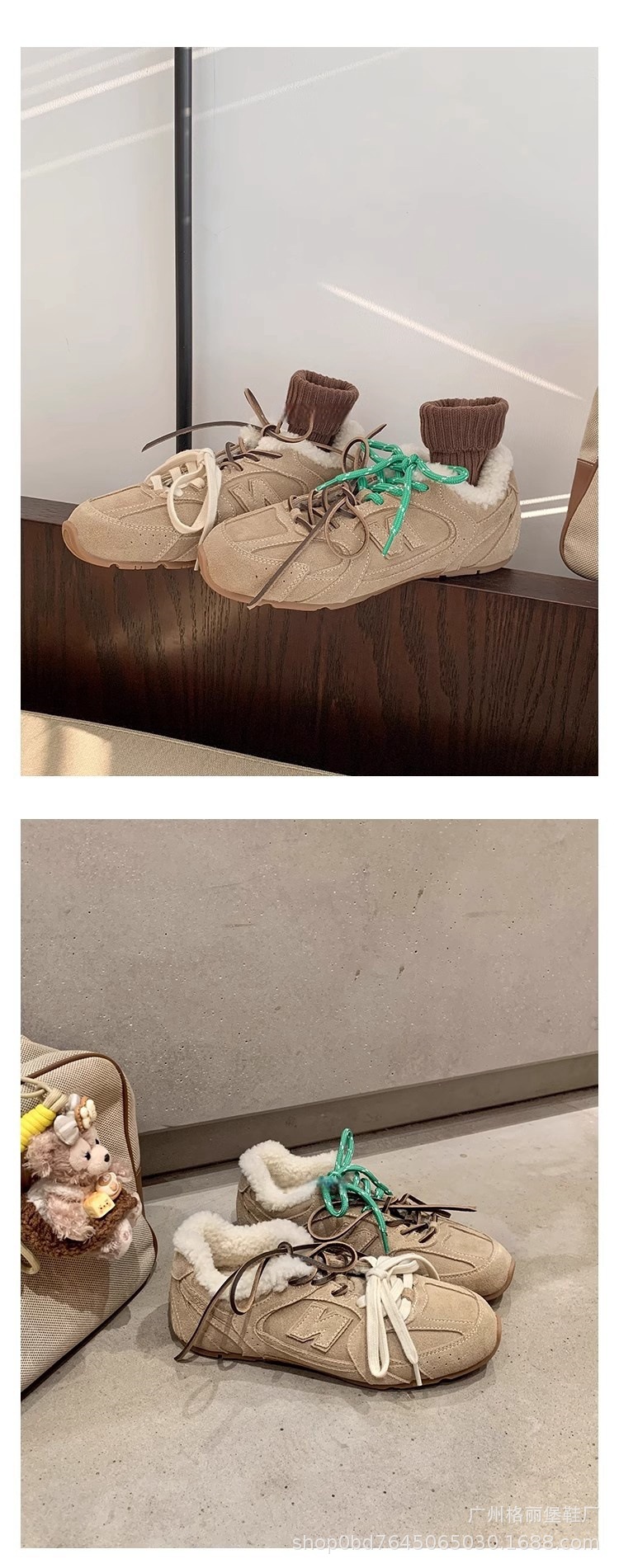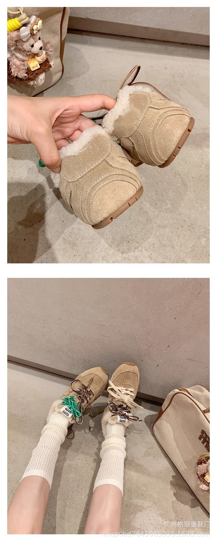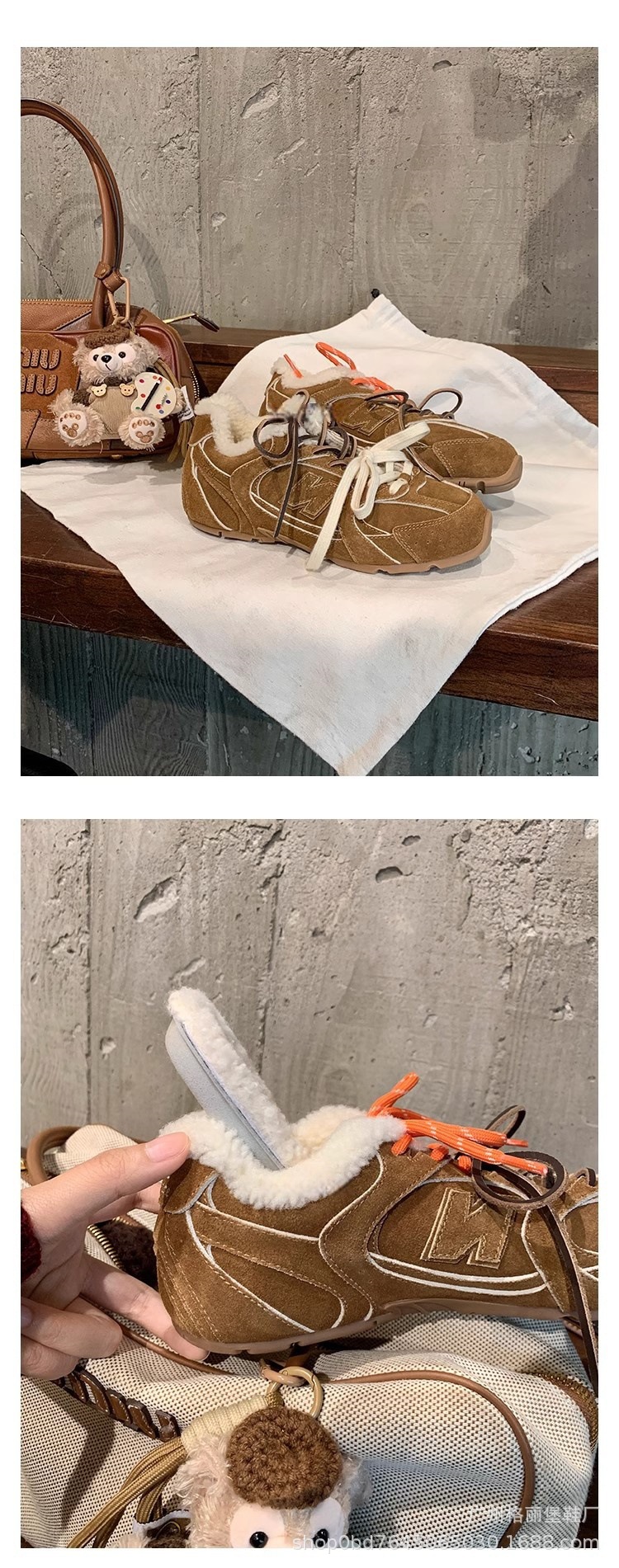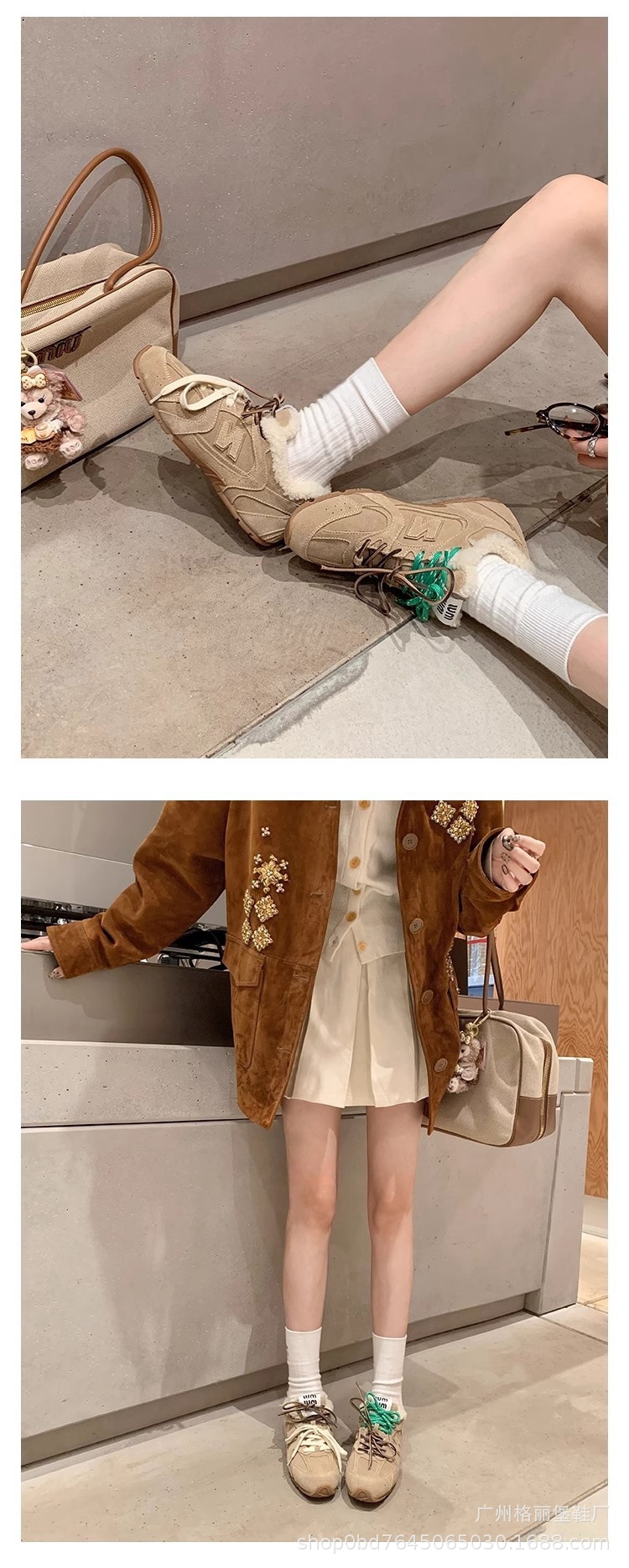 2024 가을과 겨울 miu 가족 조합 이름 훈련 신발 울과 벨벳 내부 높이 따뜻한 캐주얼 forrest gump 신발 두꺼운 면화 신발스토어 가기