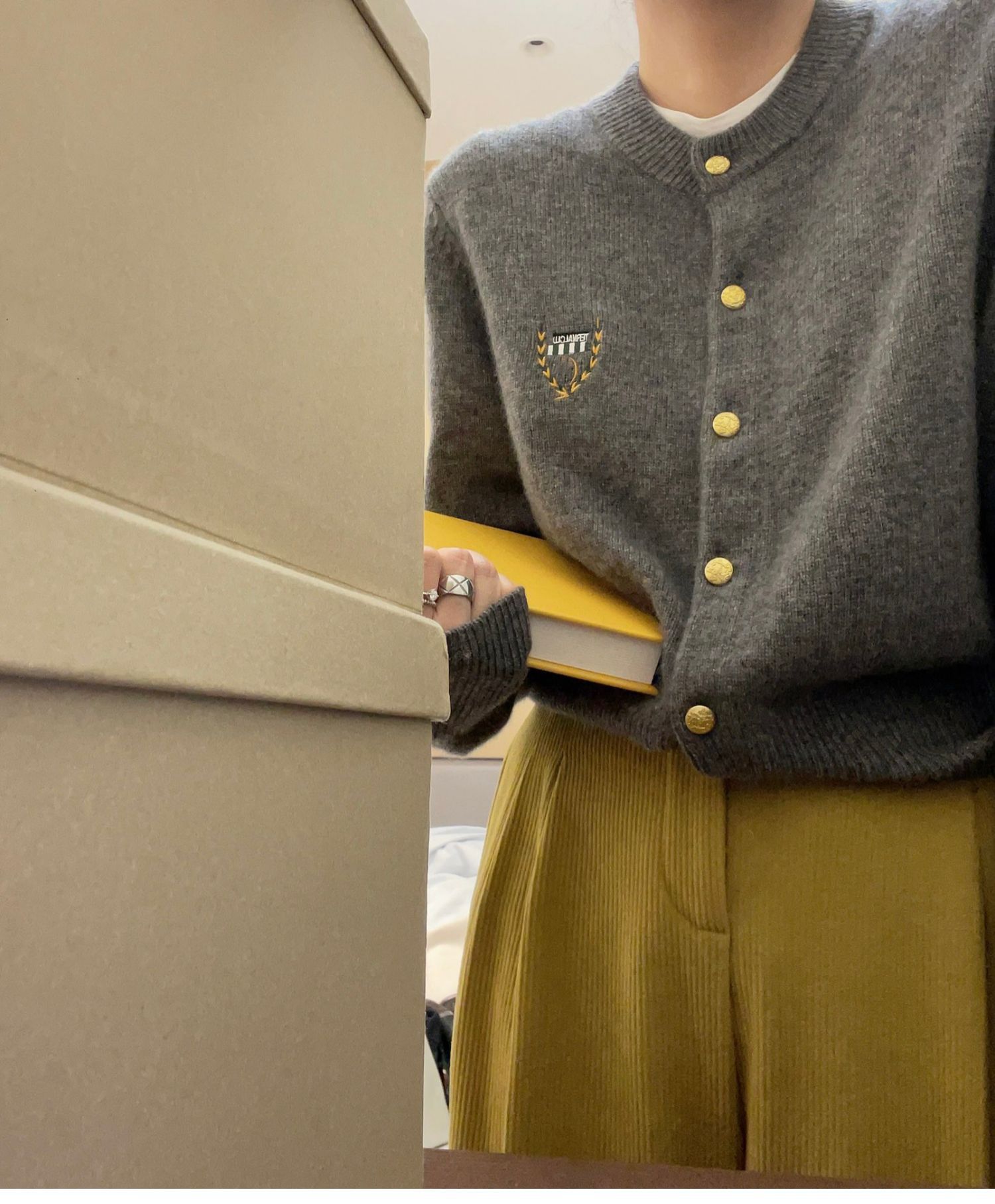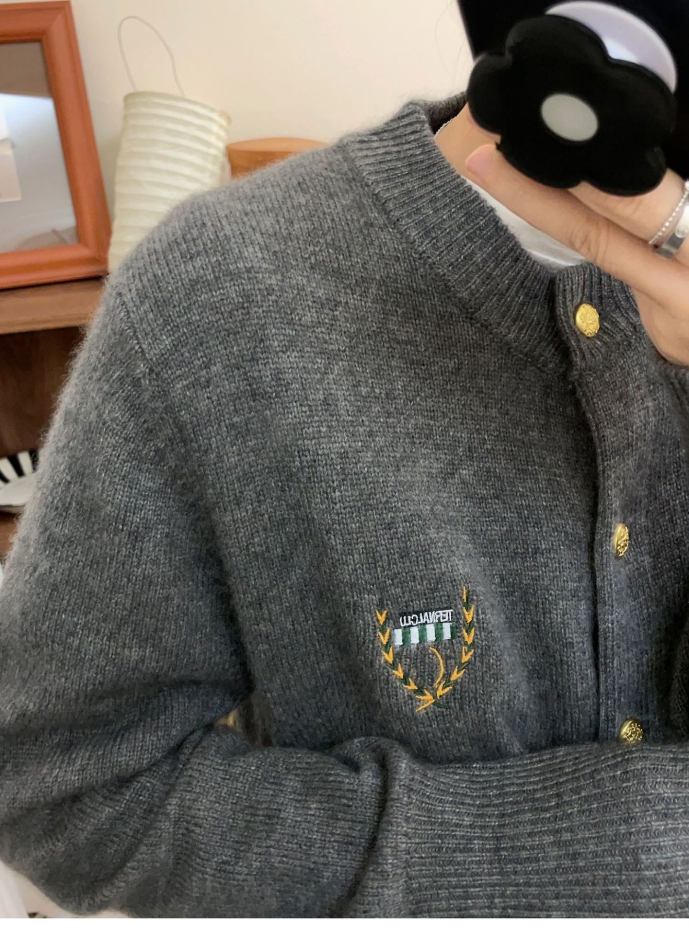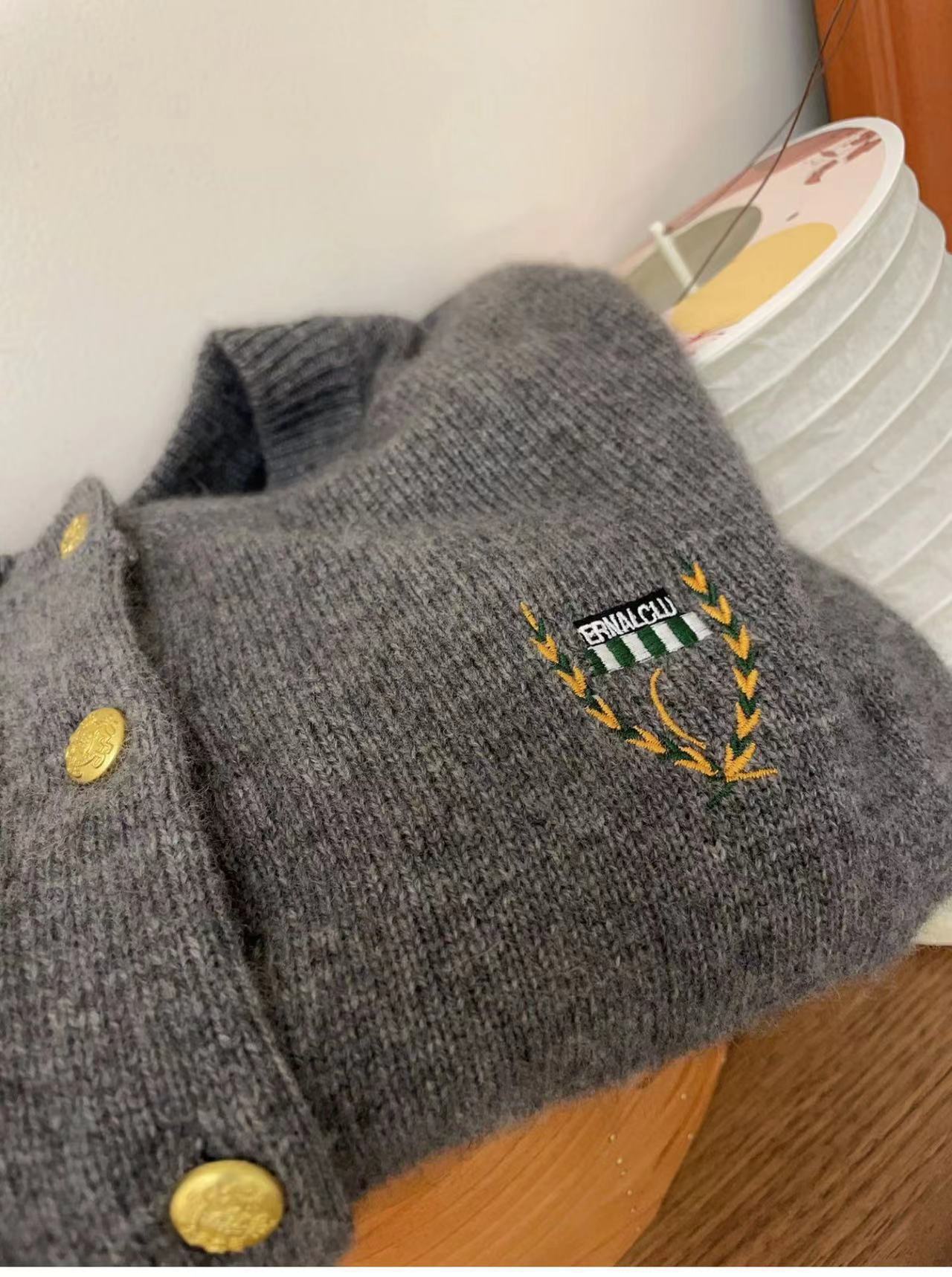 너구리 벨벳 자수 배지 스웨터 코트 여성의 가을과 겨울 두꺼운 겨울 내베이스 니트 카디건 양모 탑