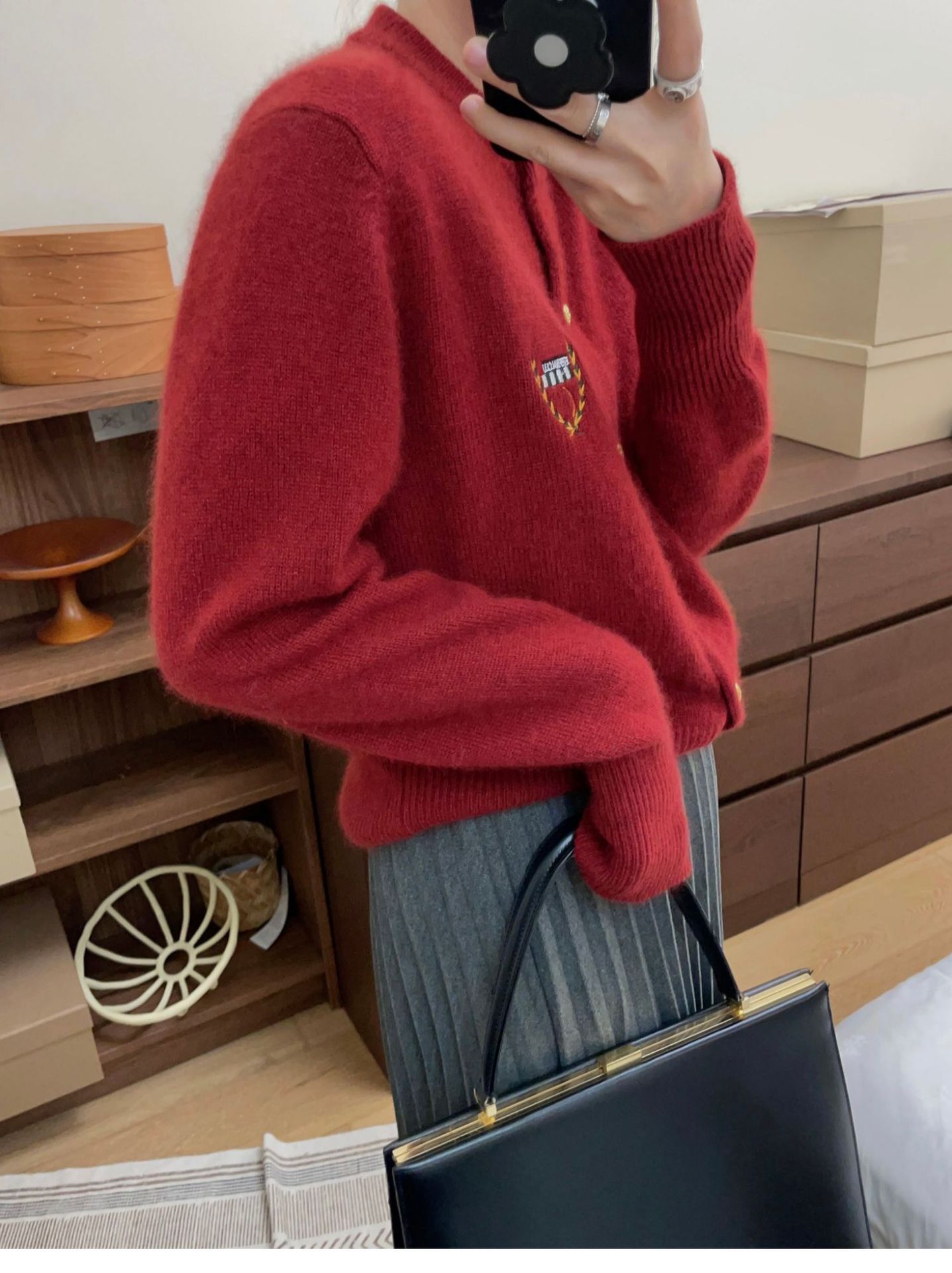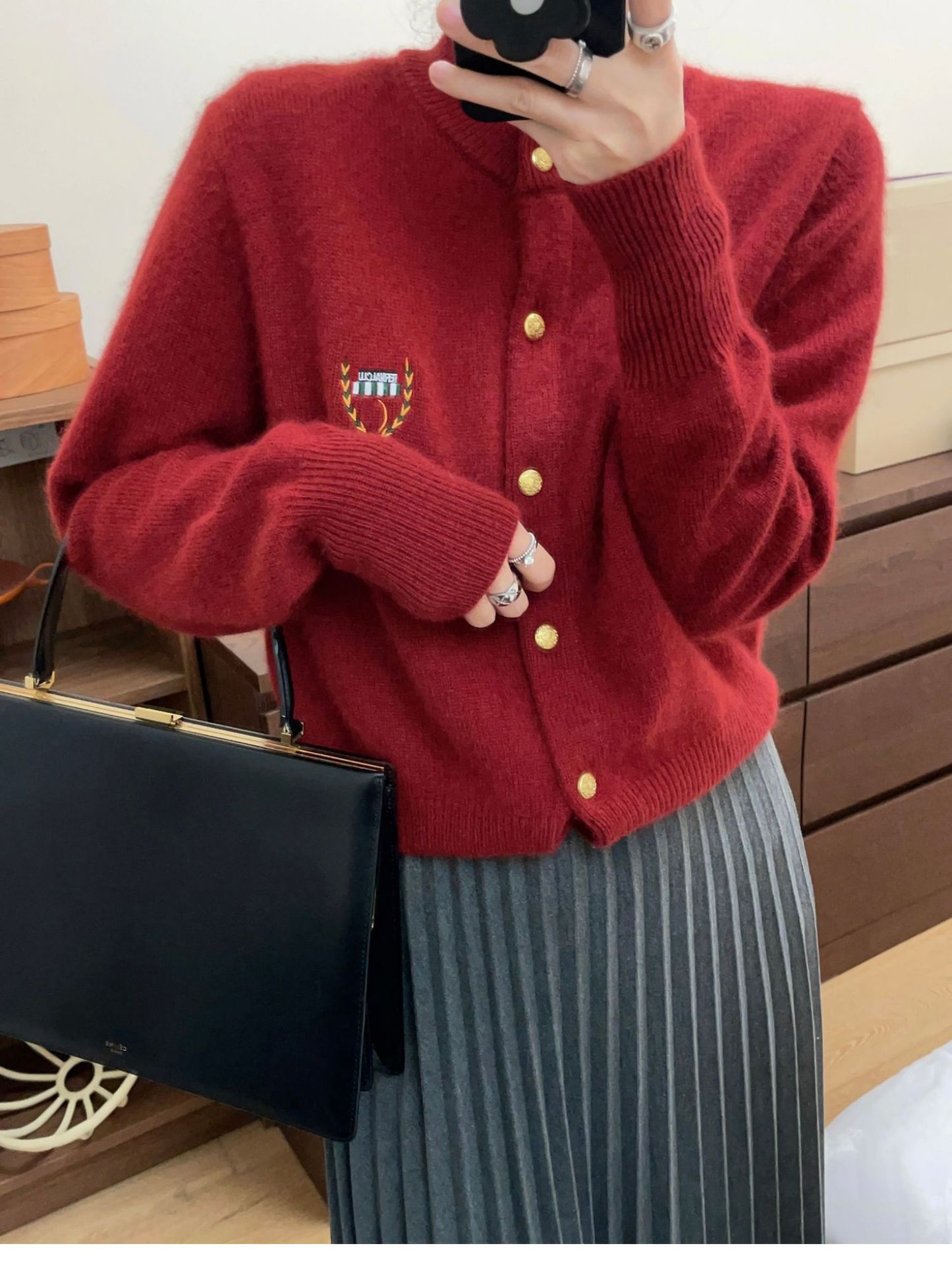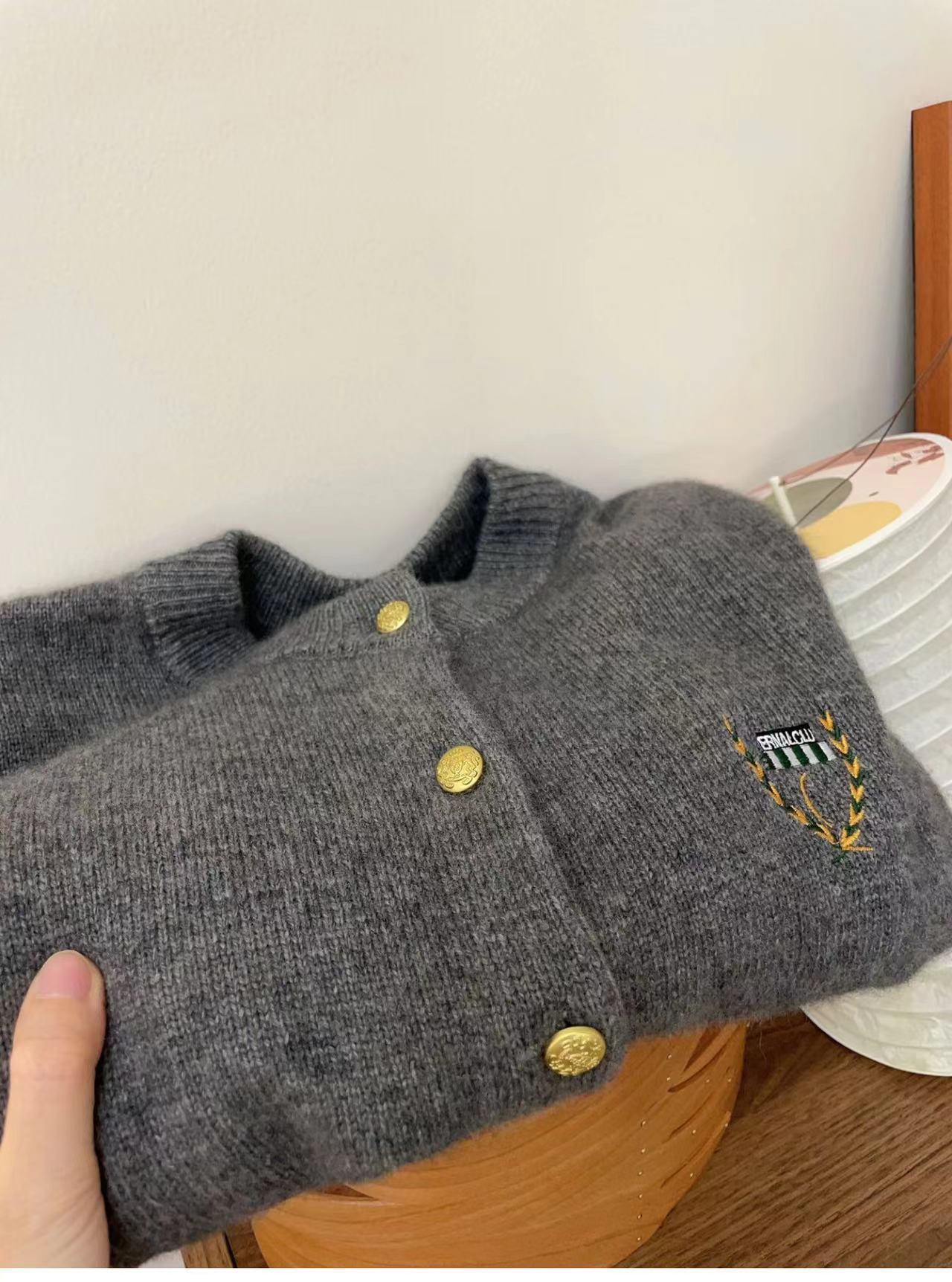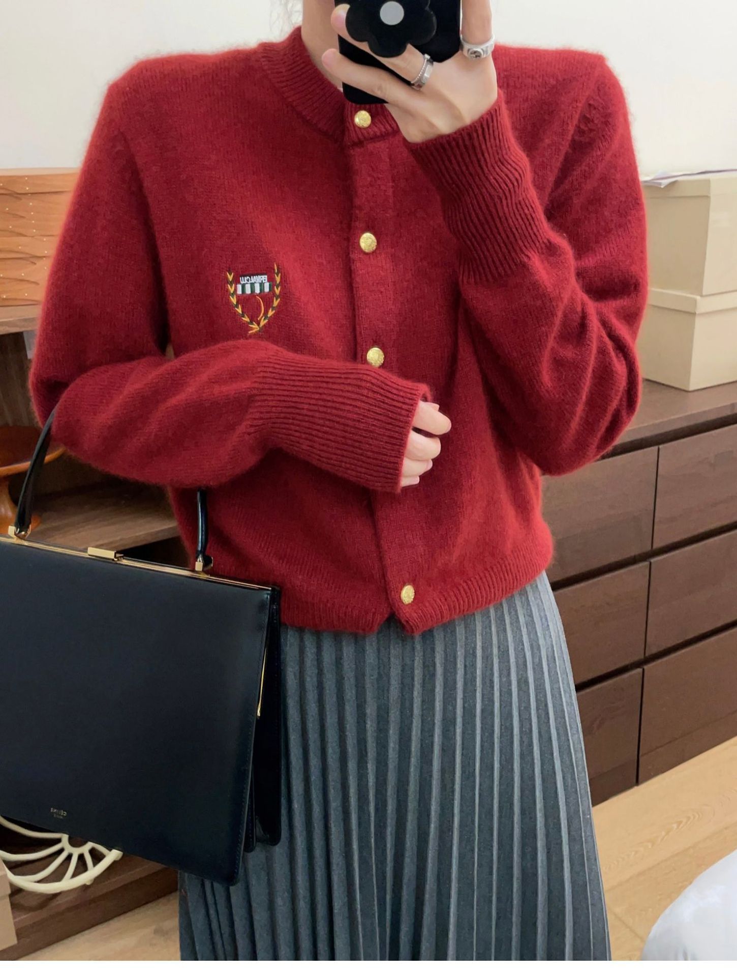 너구리 벨벳 자수 배지 스웨터 코트 여성의 가을과 겨울 두꺼운 겨울 내베이스 니트 카디건 양모 탑