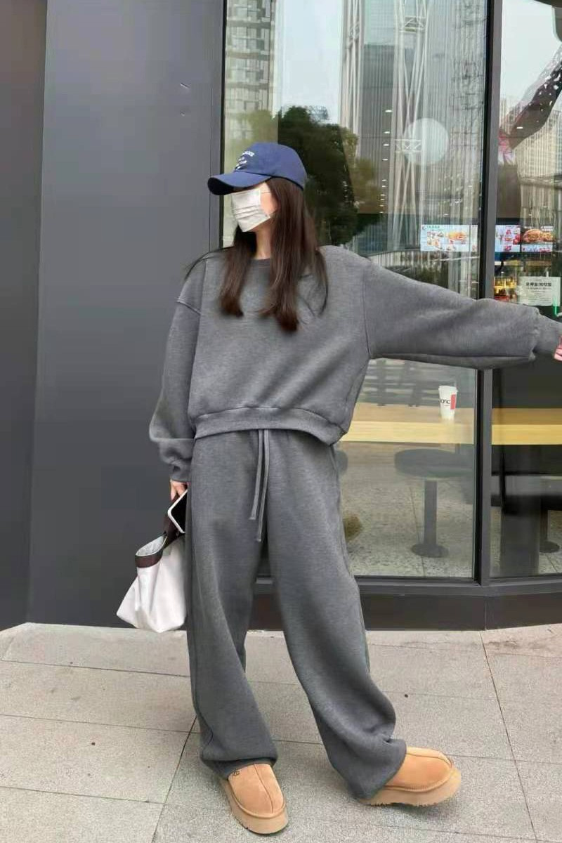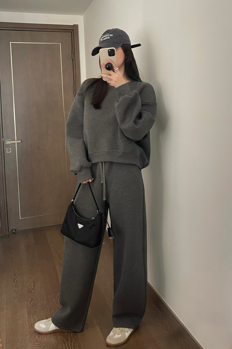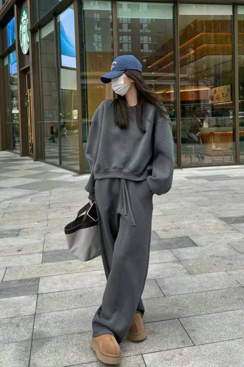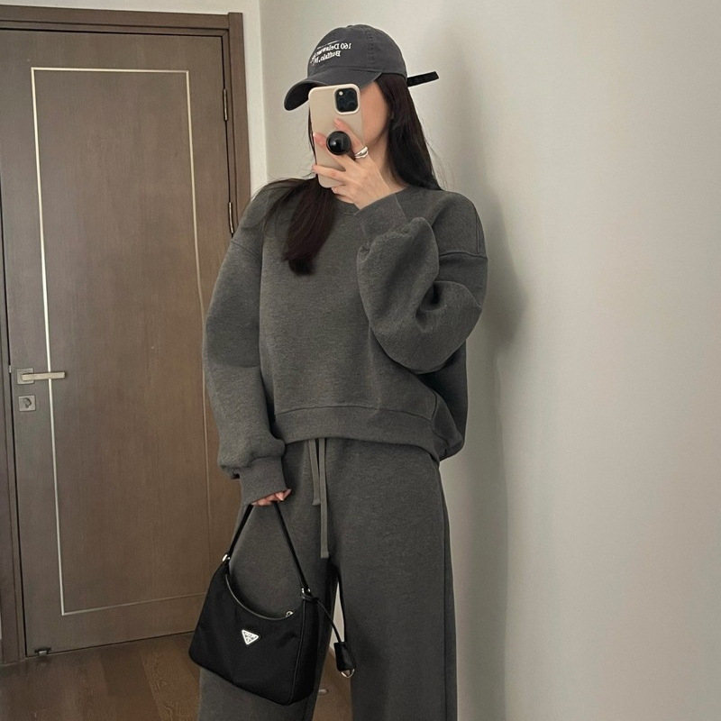 한국식 스웨트 셔츠 캐주얼 스포츠 정장 여성 봄, 가을 패션 작은 봄, 가을 착용 와이드 팬츠 투피스 트렌디 세트스토어 가기