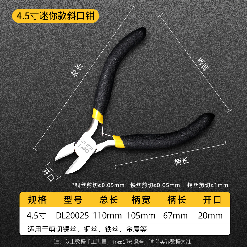델리 물 입 펜치 절단 펜치 대각선 펜치 산업 등급 건담 오프셋 작은 펜치 비스듬한 입 전자 얇은 절단 라인 전기 기술자스토어 가기