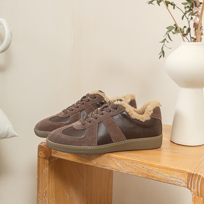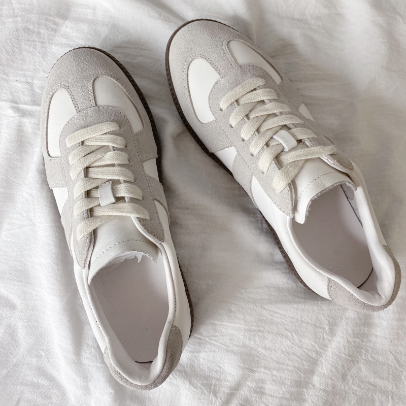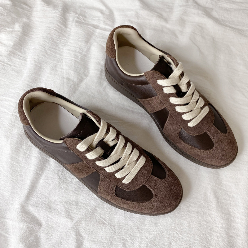 첫 번째 층 소가죽 레트로 울 통합 데트린 슈즈 여성용 다용도 스포츠 플랫 캐주얼 스니커즈 레이스업 양가죽 화이트스토어 가기