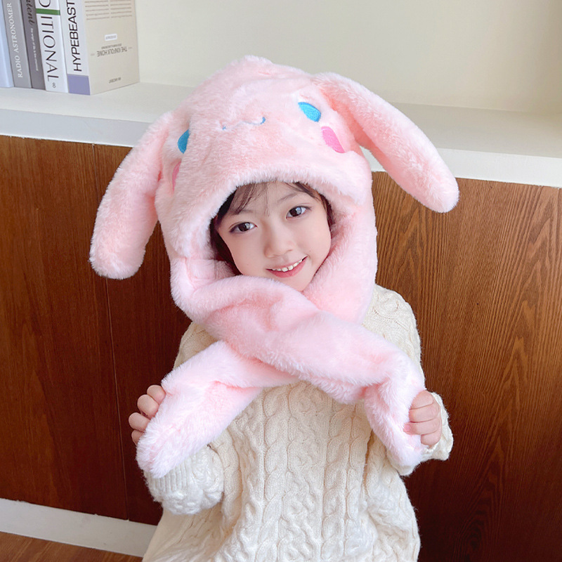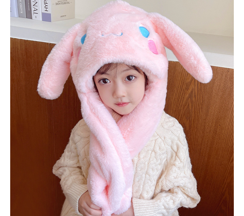 토끼 귀 이동 어린이 모자 겨울 소녀 소년 봉제 스카프 후드 방풍 레이 펑 모자