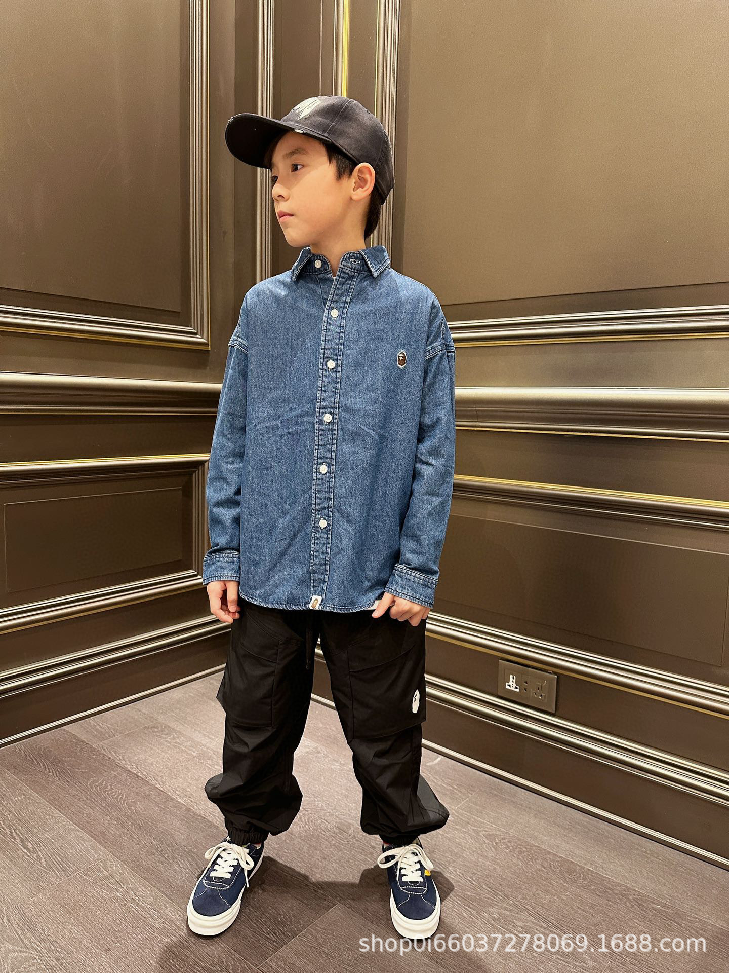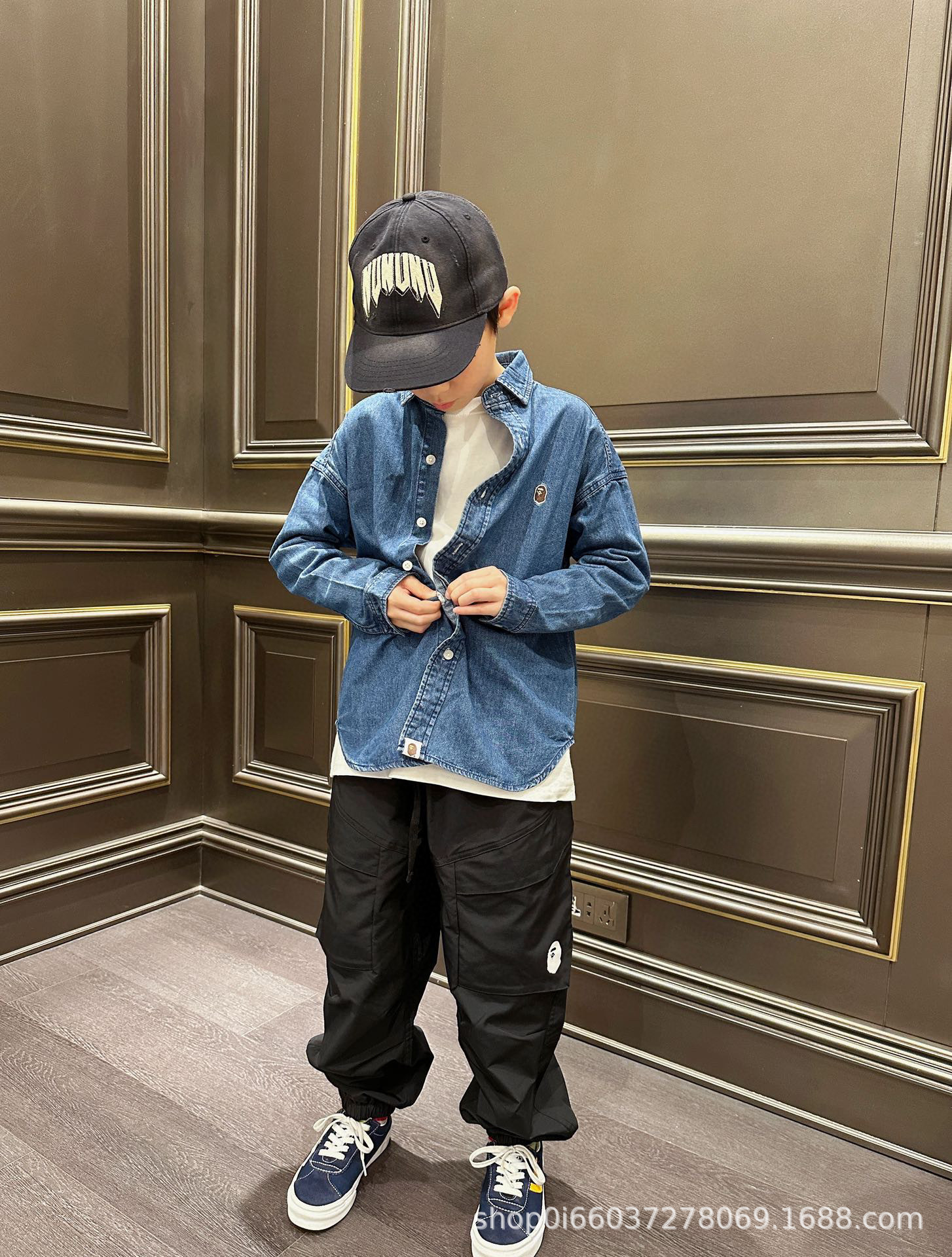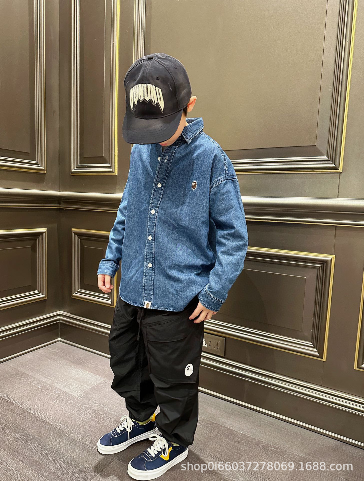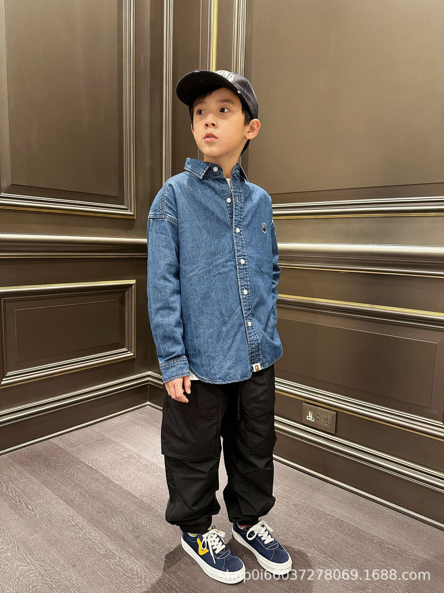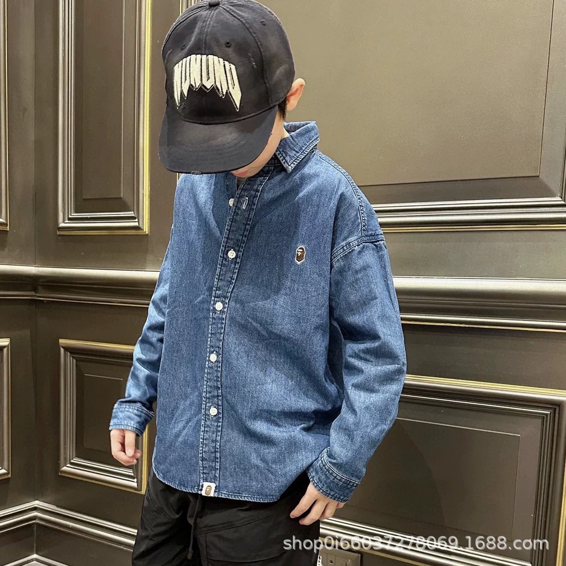 소년 데님 셔츠 봄과 가을 24 새로운 일본 트렌디 브랜드 아동복 최고 중대형 어린이 복고풍 데님 컬러 셔츠스토어 가기