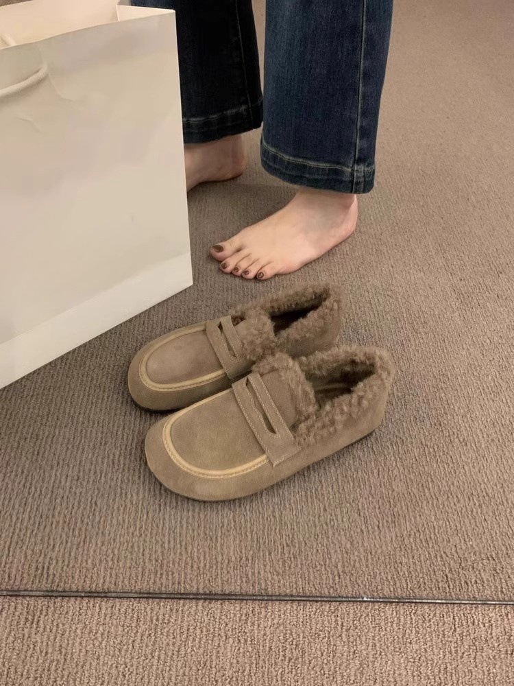 일본 기모 출산 신발 여성의 2024 겨울 새로운 게으른 한 페달 신발 임산부 플랫 따뜻한 코튼 신발스토어 가기