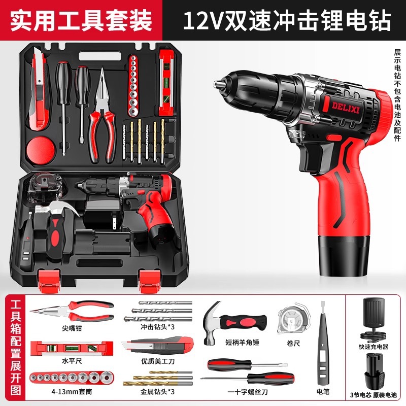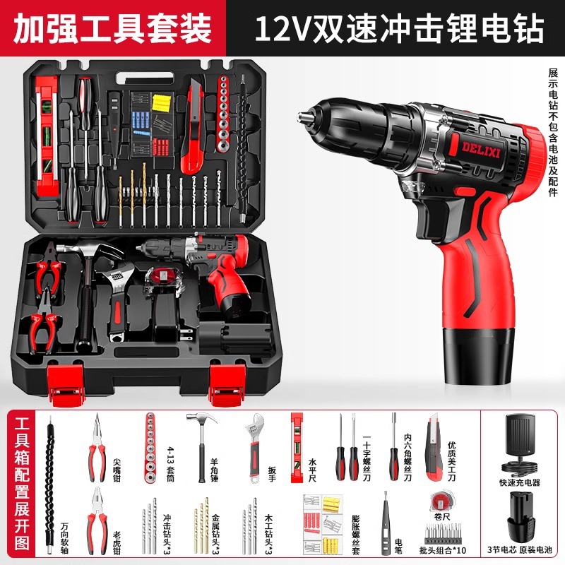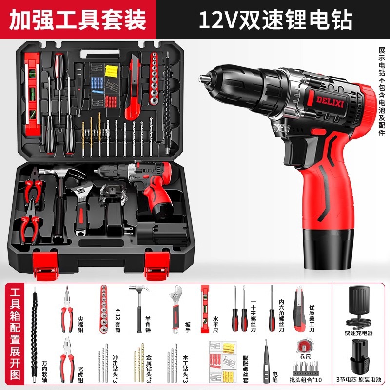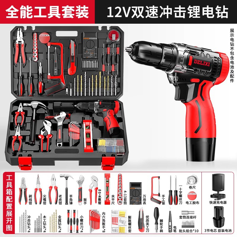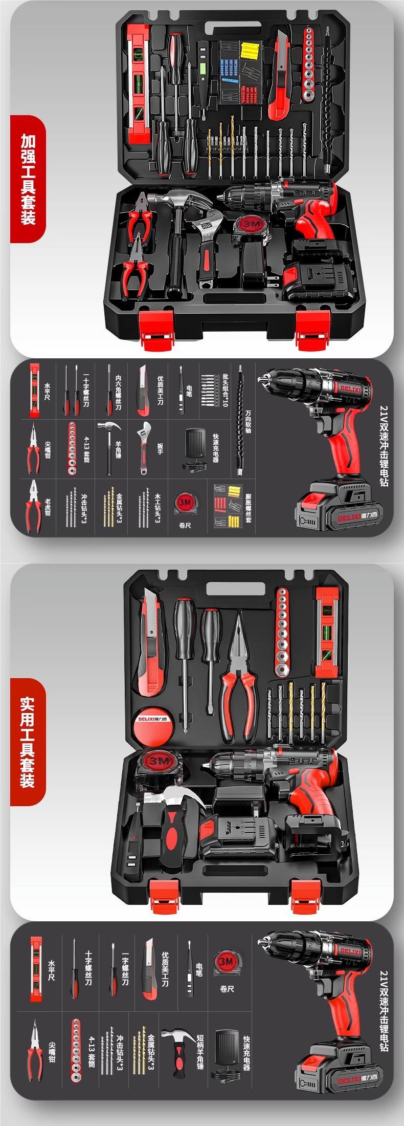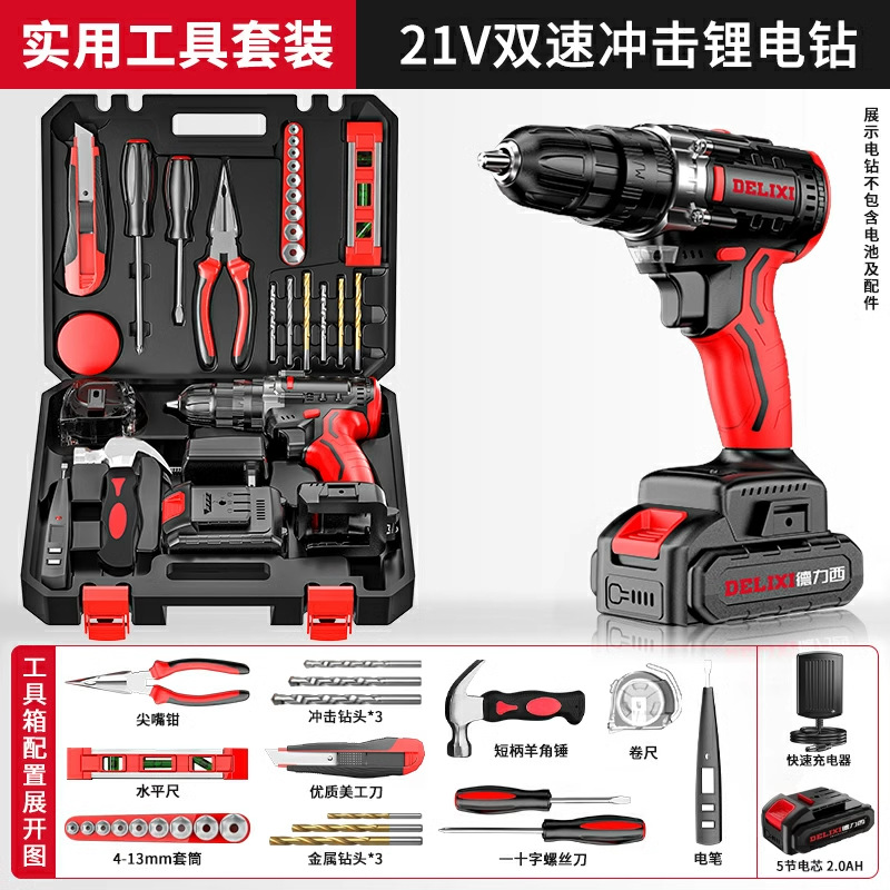 Delixi 전기 드릴 리튬 배터리 충전식 충격 권총 드릴 가정용 세트 전기 드라이버 다기능 도구 상자스토어 가기