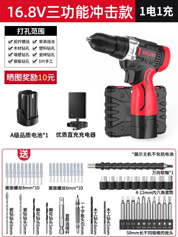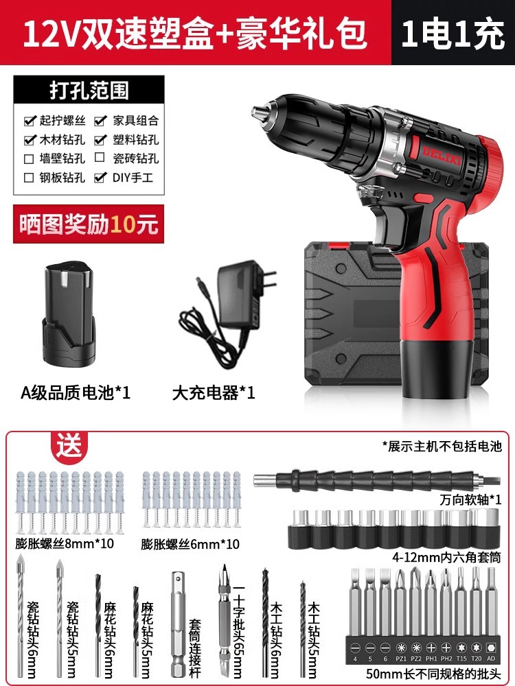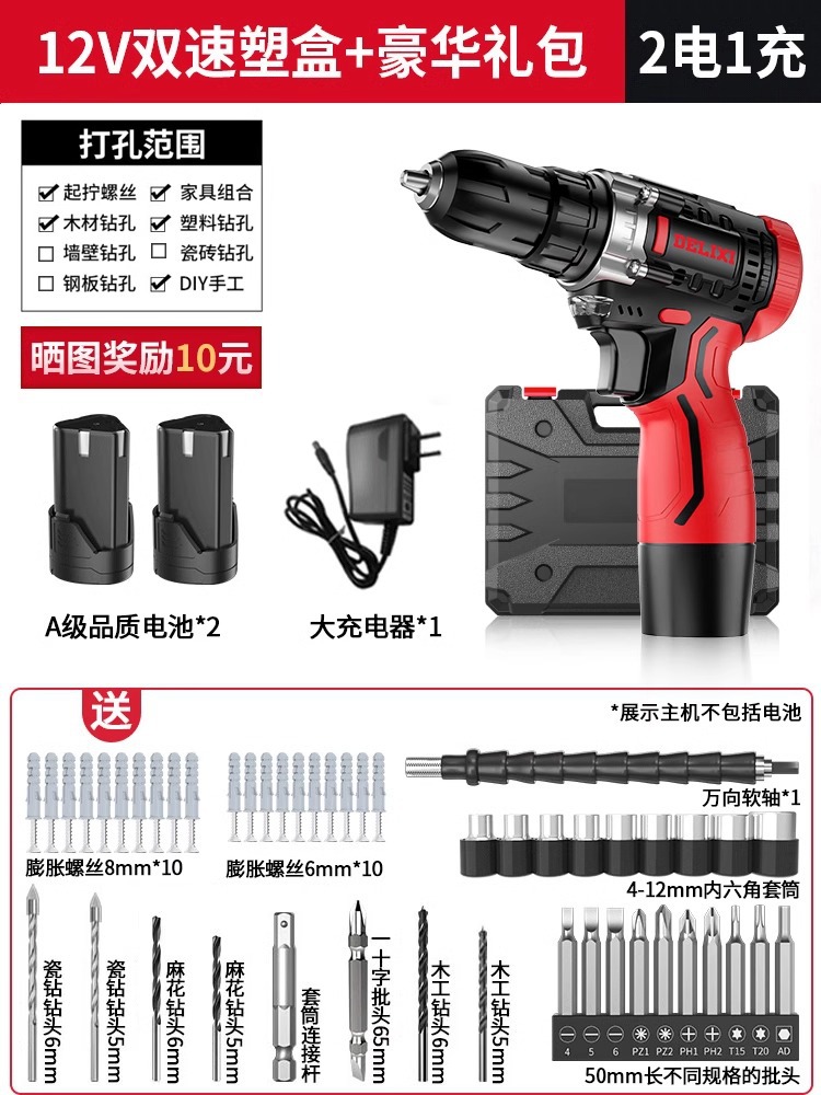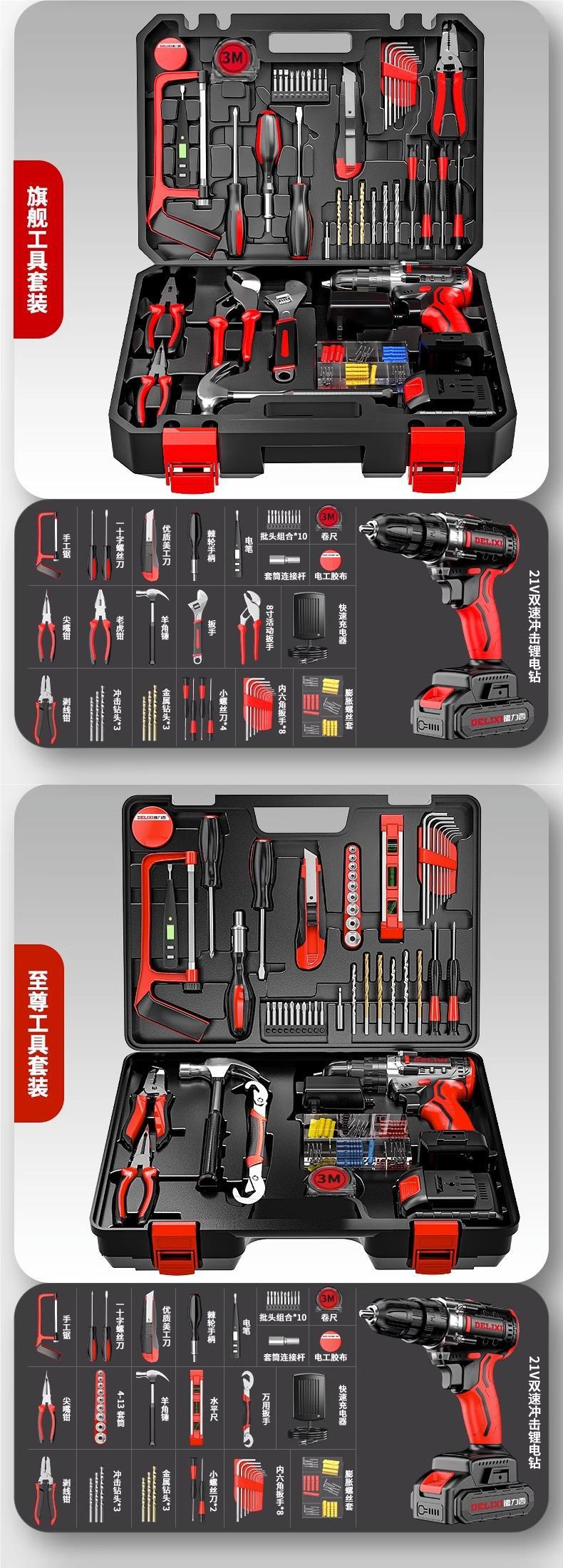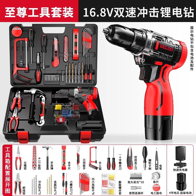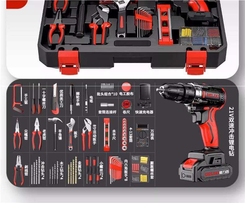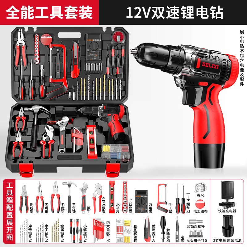 Delixi 전기 드릴 리튬 배터리 충전식 충격 권총 드릴 가정용 세트 전기 드라이버 다기능 도구 상자스토어 가기