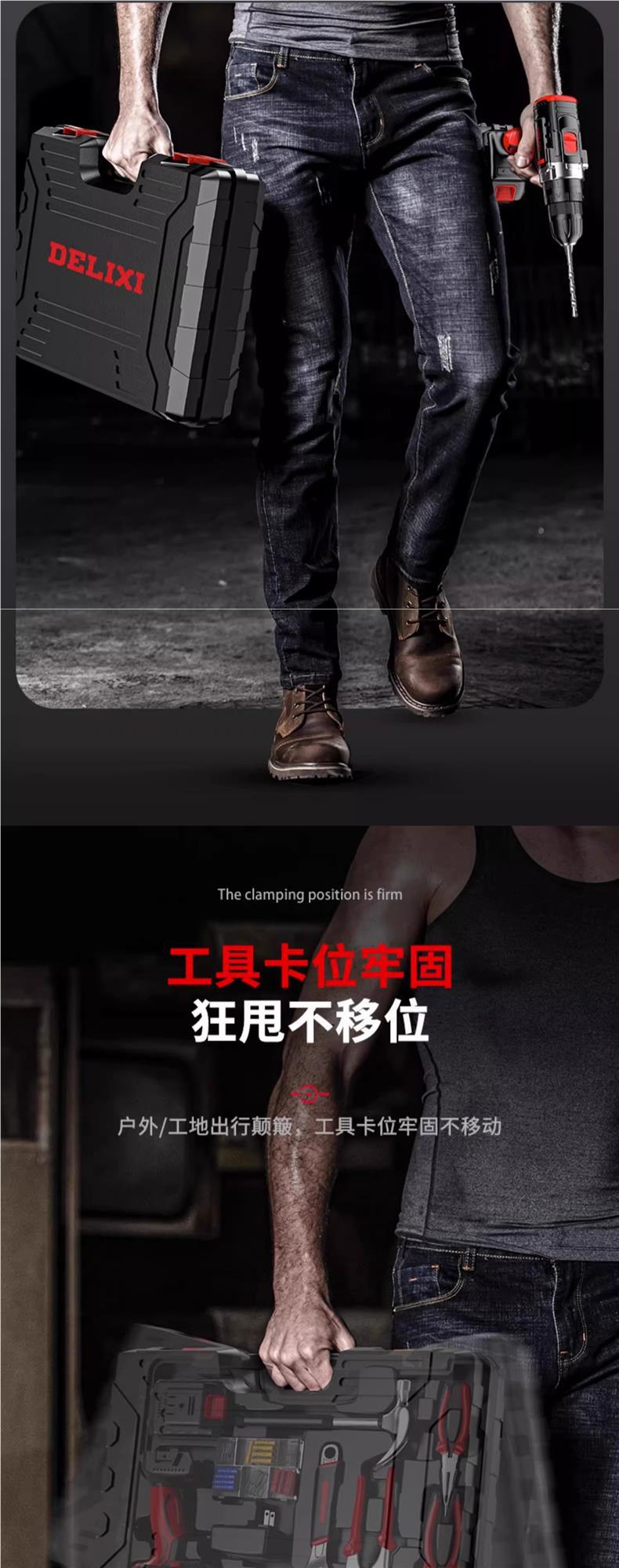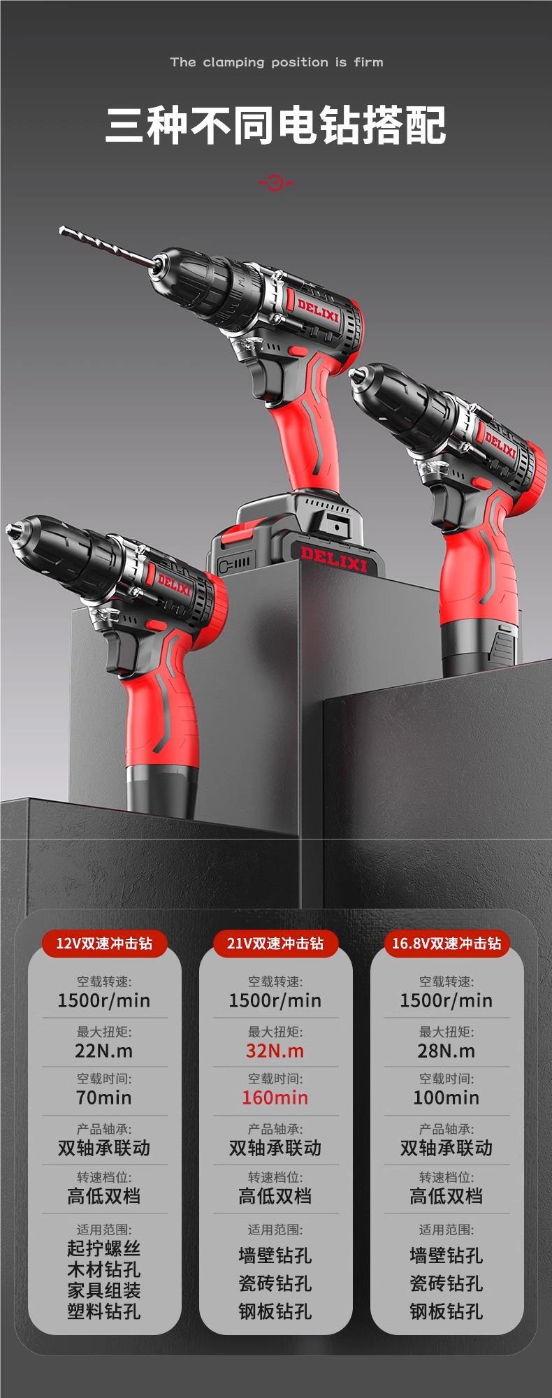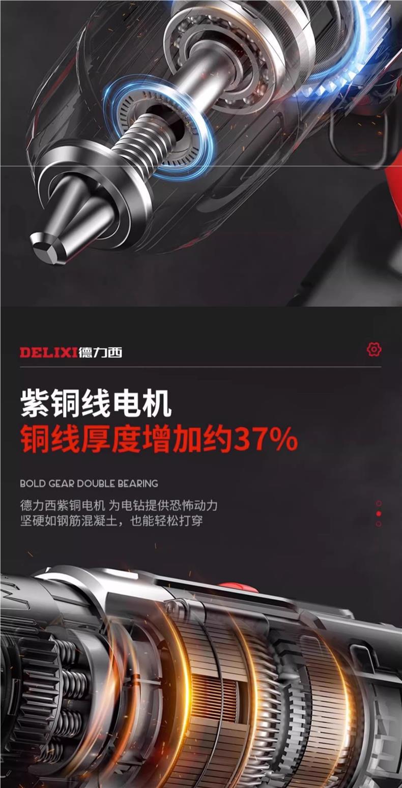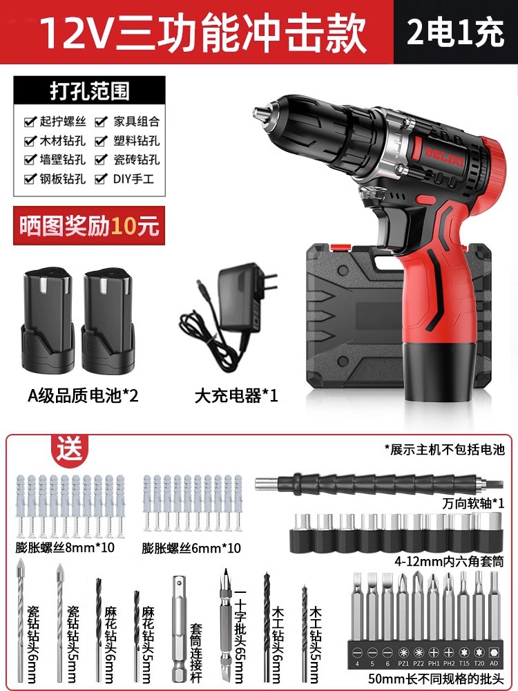 Delixi 전기 드릴 리튬 배터리 충전식 충격 권총 드릴 가정용 세트 전기 드라이버 다기능 도구 상자스토어 가기