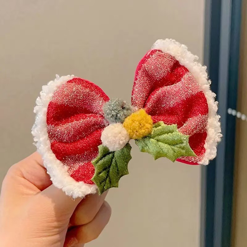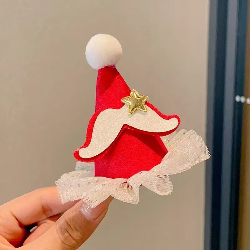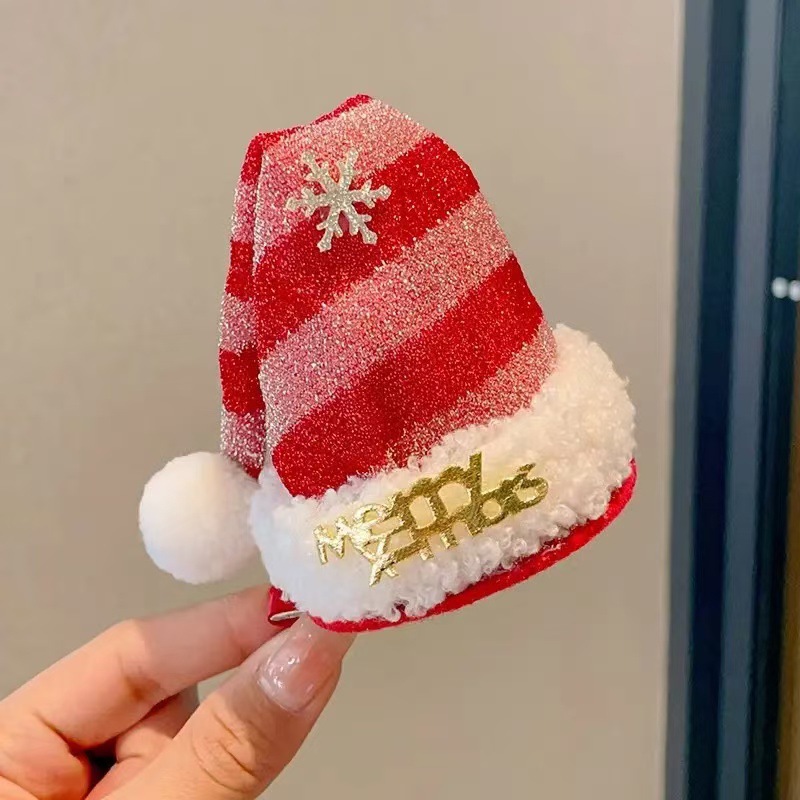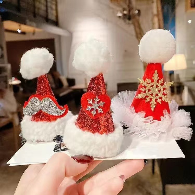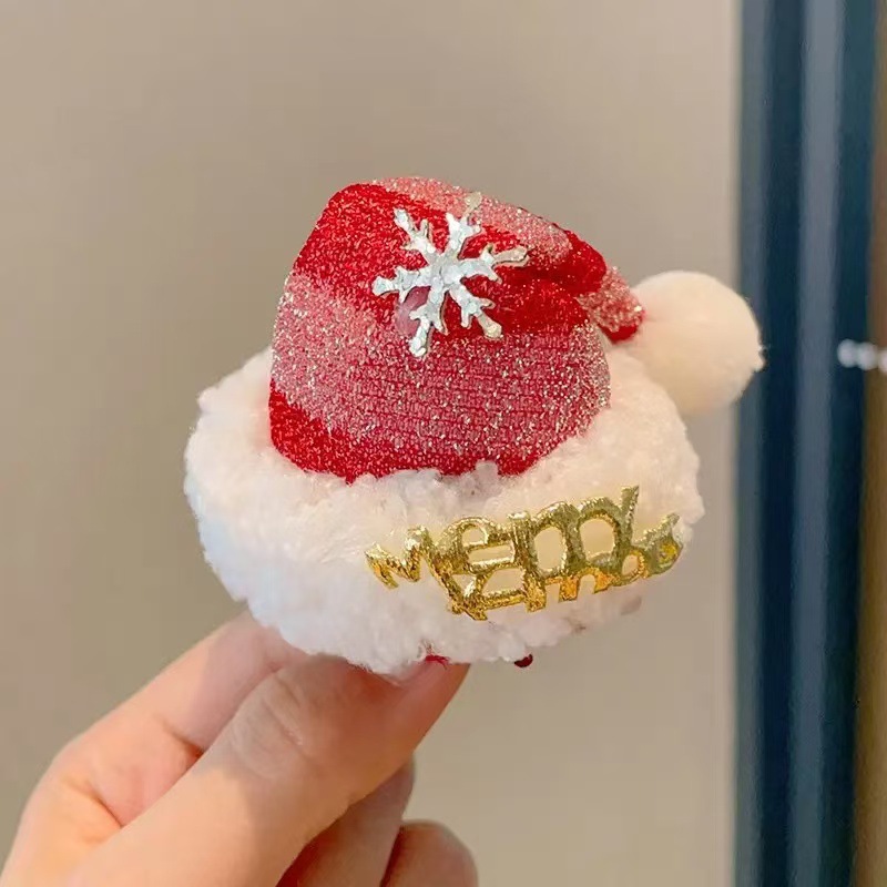 활 머리핀 크리스마스 크리스마스 빨간 모자 헤드웨어 헤어 밴드 플러시 헤드 밴드 귀여운 클립 헤어핀 헤어 액세서리