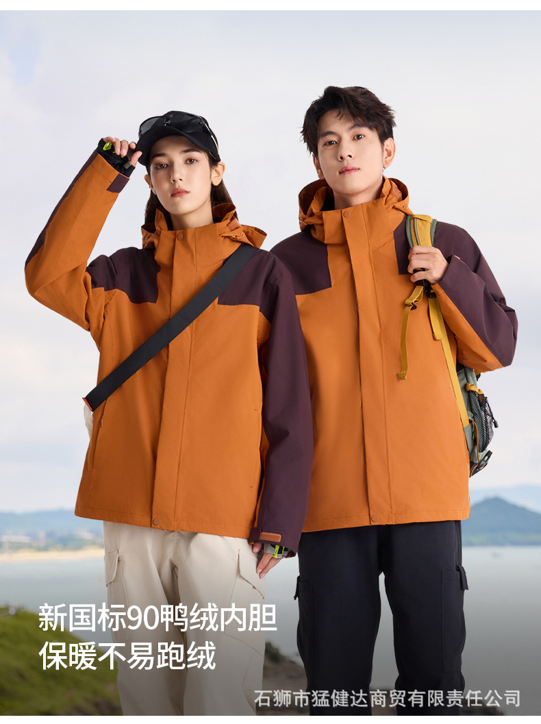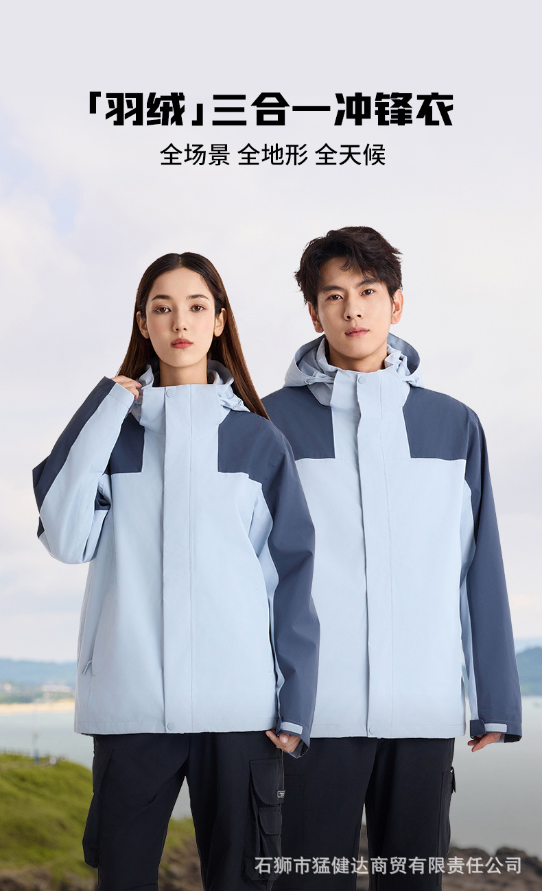 신형 국가 표준 다운 재킷 3-in-1 남성용 25년 가을 겨울 야외 방풍 방수 작업복 등산복 여성용스토어 가기
