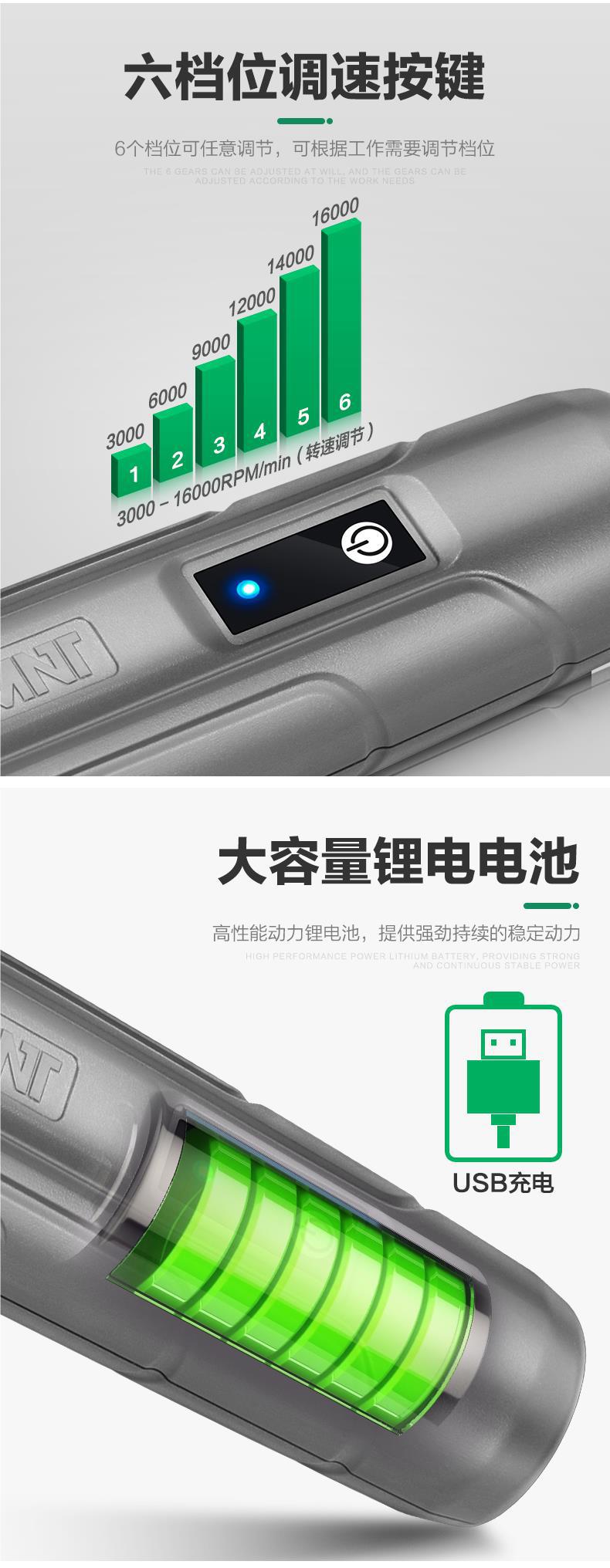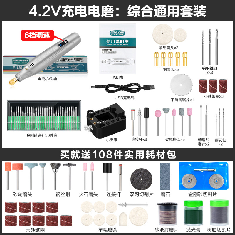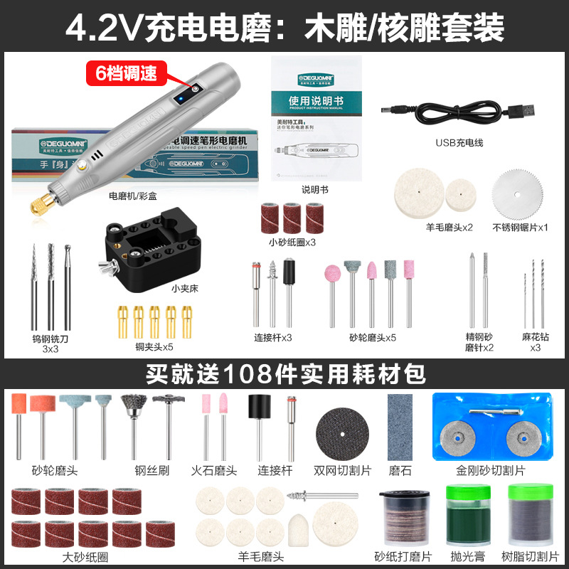 • [충전 및 연결] 4.2V 6단 속도 조절: 목각/옥 조각용 범용