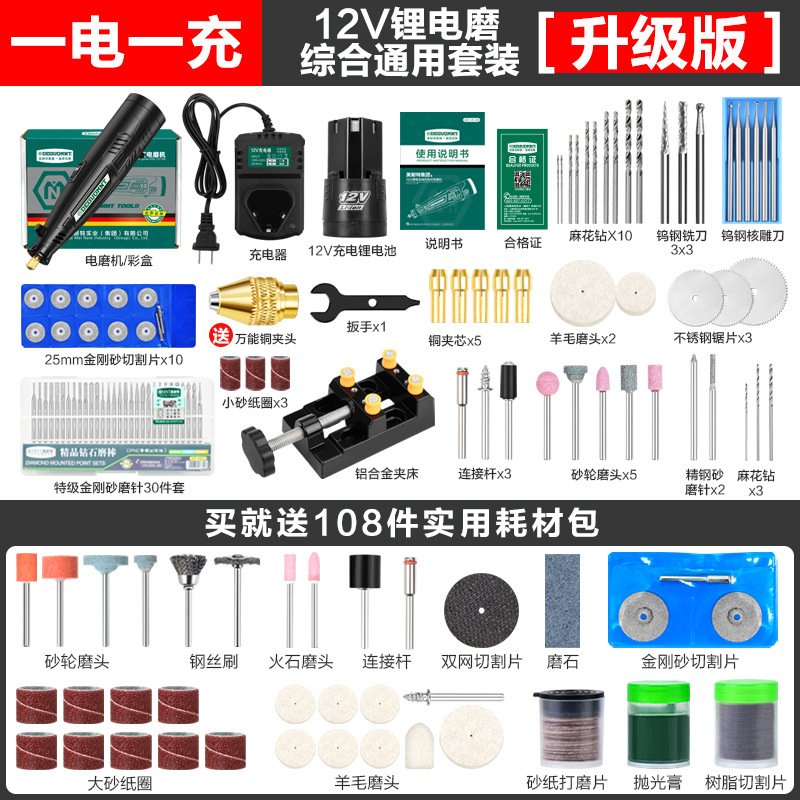 충전식 전기 밀 작은 절단 연삭 폴리싱 아티팩트 전동 공구 절단 목재 조각 핵 조각 옥 조각 펜스토어 가기
