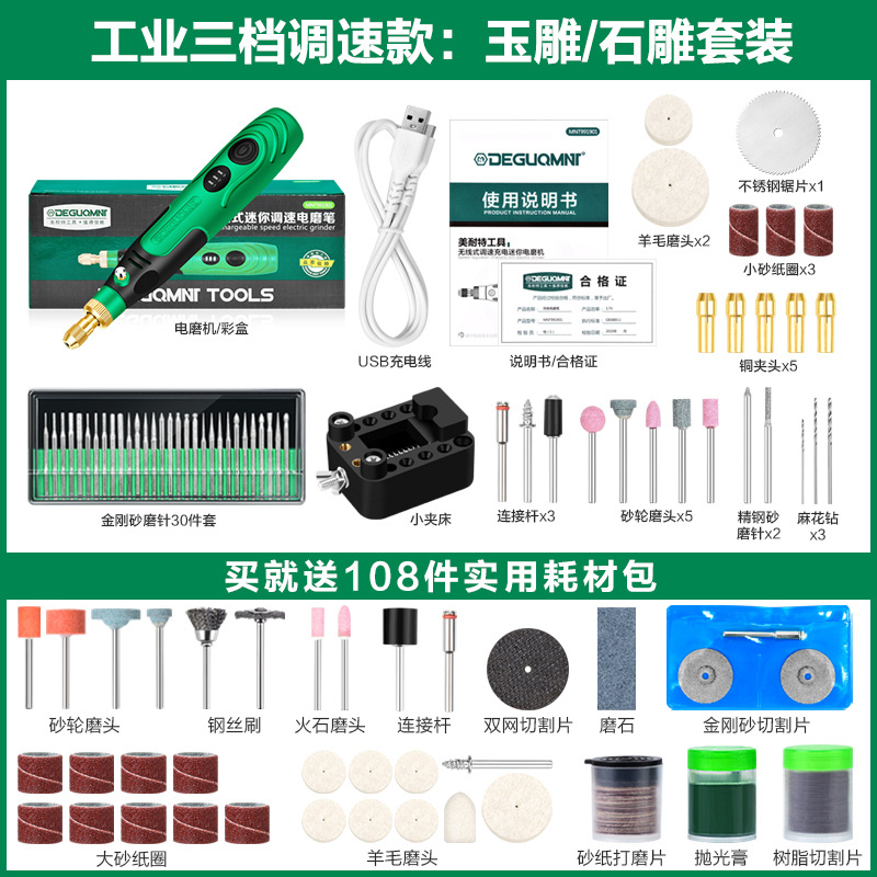 • [충전 및 연결] 산업용 등급 3단 속도 조절: 옥 조각/돌 조각
