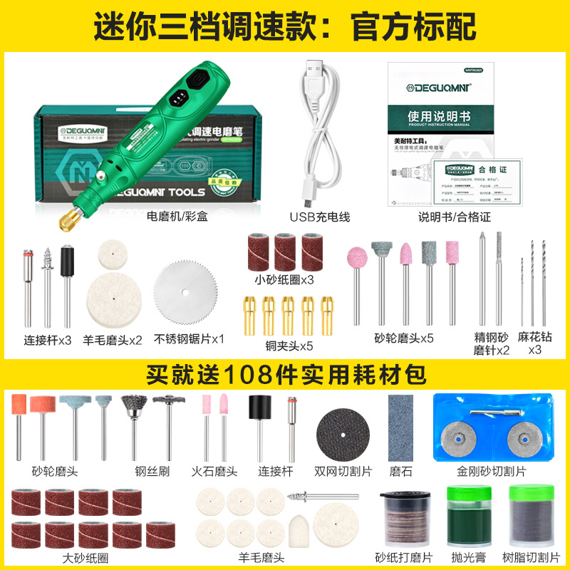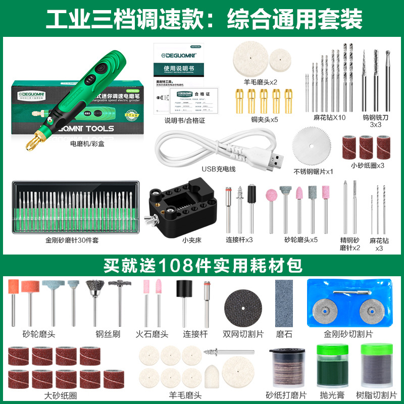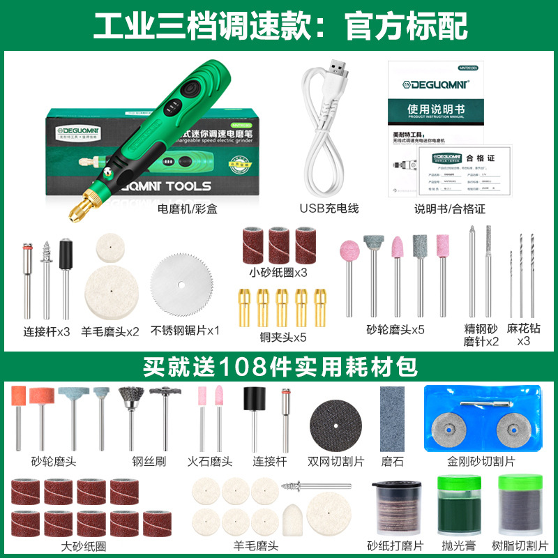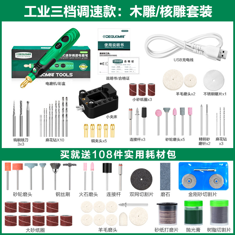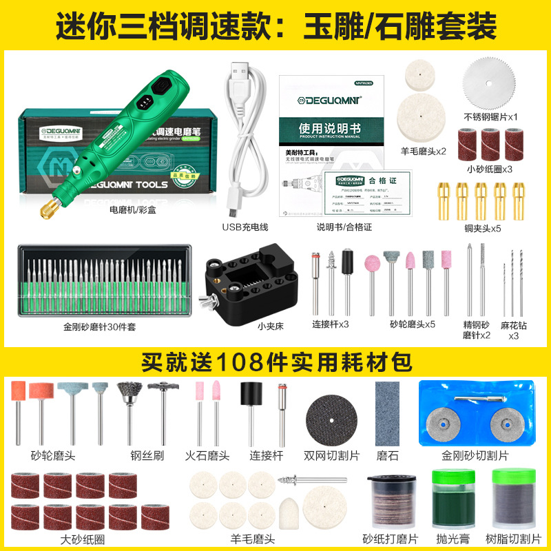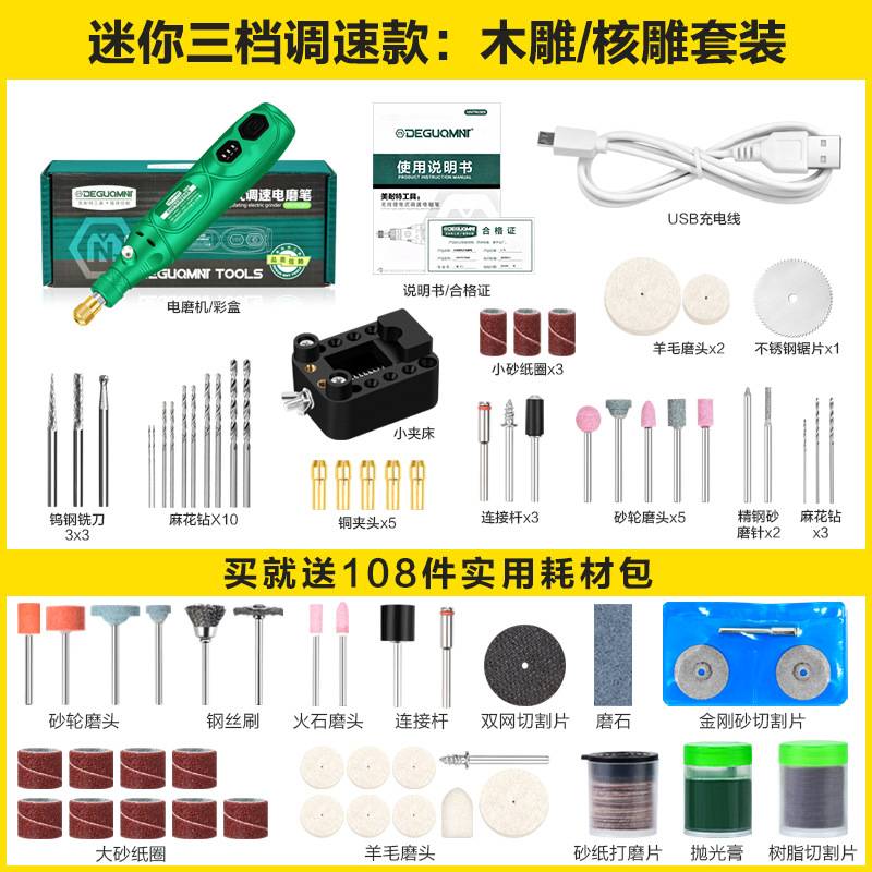 • [충전 및 연결] 미니 3단 속도 조절: 목각/옥 조각용 범용