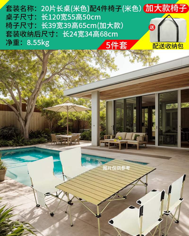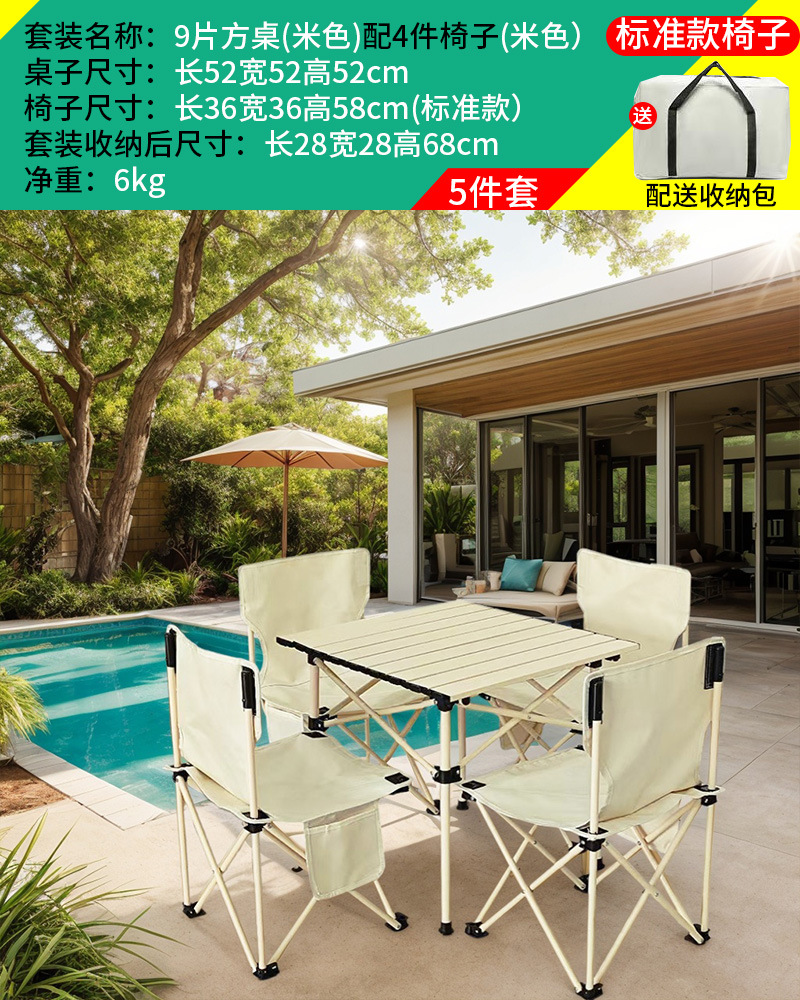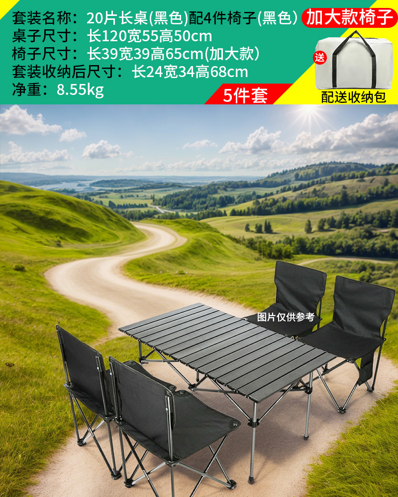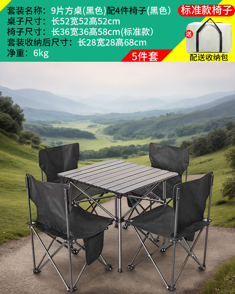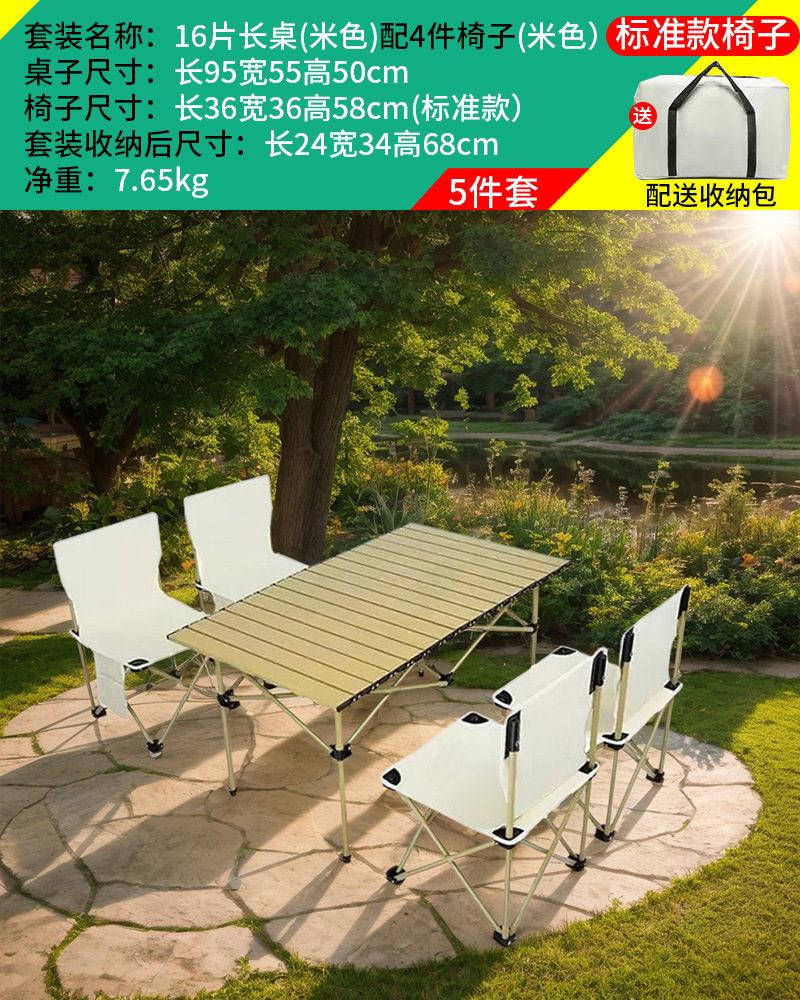야외 접이식 테이블과 의자 세트 휴대용 의자 캠핑 탄소 강철 계란 롤 테이블 캠핑 피크닉 테이블과 의자 5 피스 세트