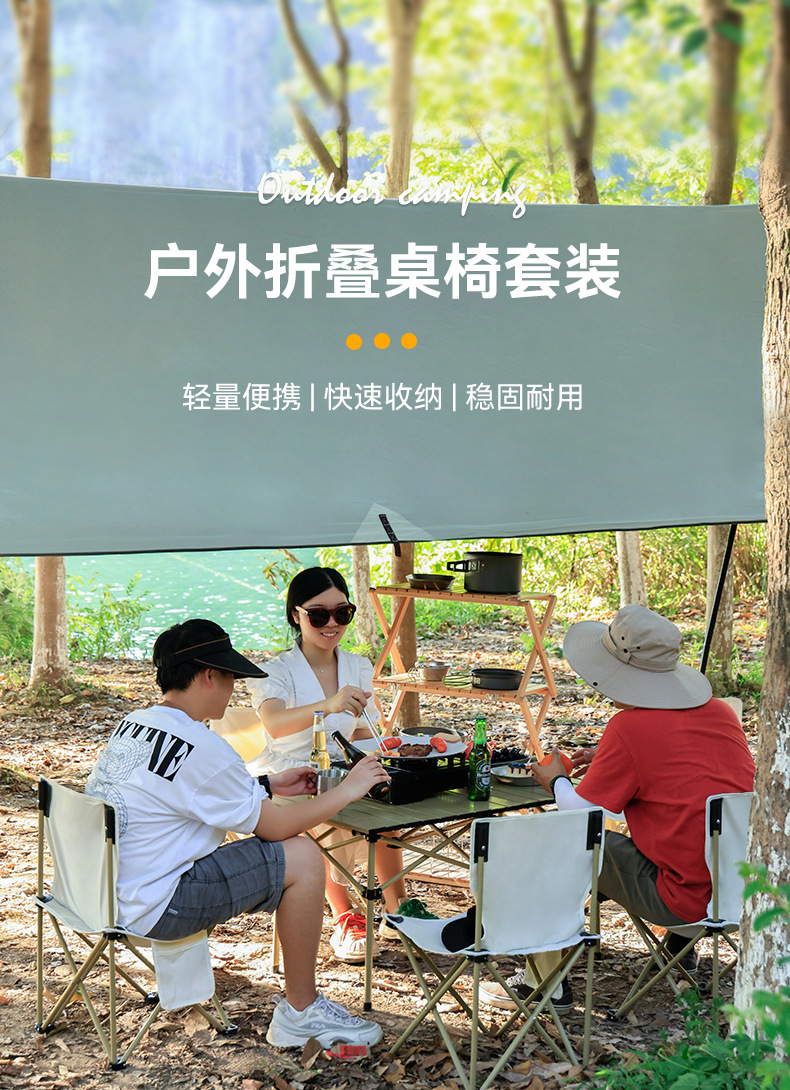 야외 접이식 테이블과 의자 세트 휴대용 의자 캠핑 탄소 강철 계란 롤 테이블 캠핑 피크닉 테이블과 의자 5 피스 세트스토어 가기