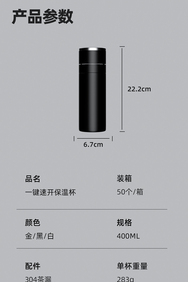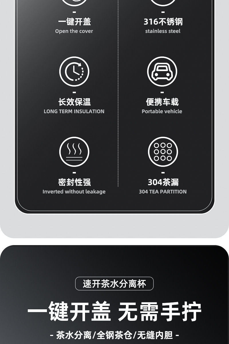 새로운 원 버튼 오픈 뚜껑 자동차 빠른 오픈 컵 남자 차 물 분리 차 사무실 컵 316 스테인레스 스틸 보온병 컵스토어 가기