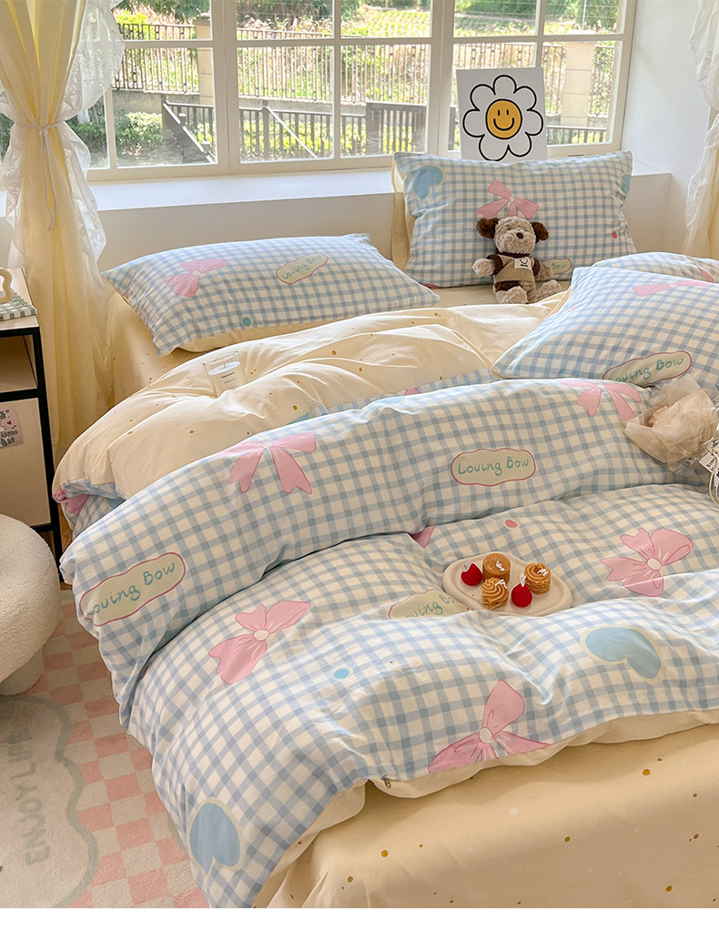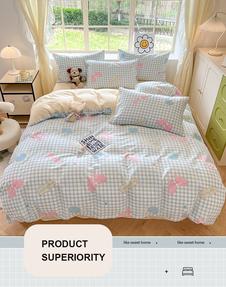 새로운 4 피스 코튼 작은 신선한 학생 기숙사 싱글 더블 4 시즌 유니버설 3 피스 4 피스 도매