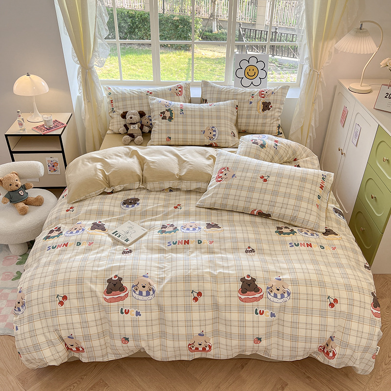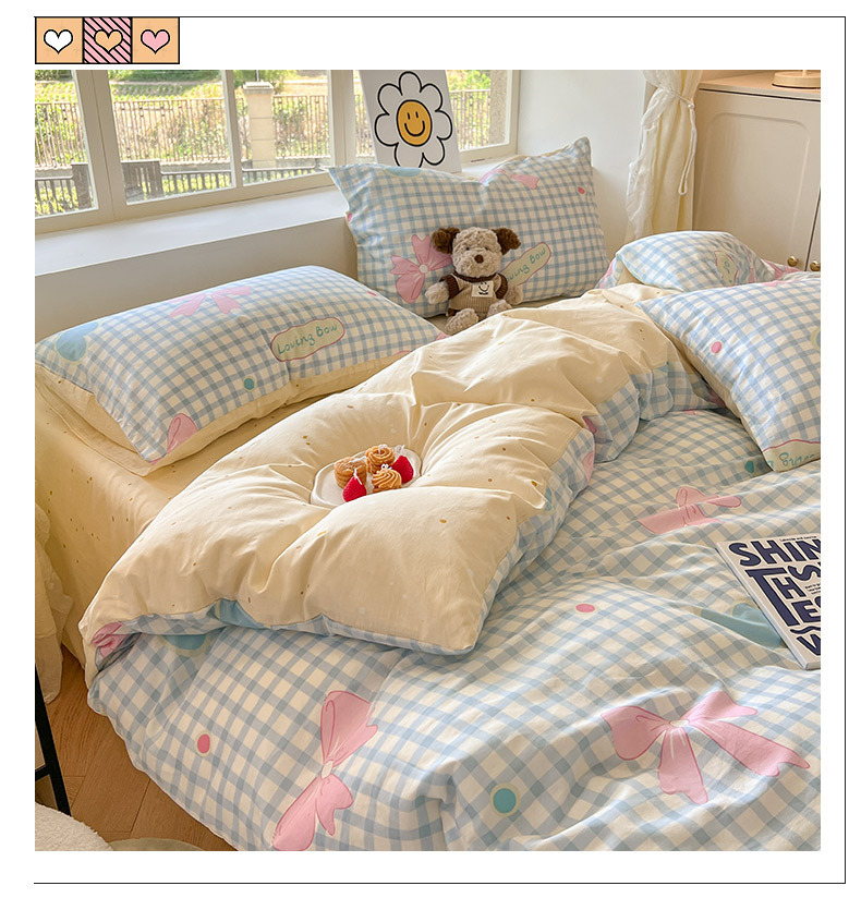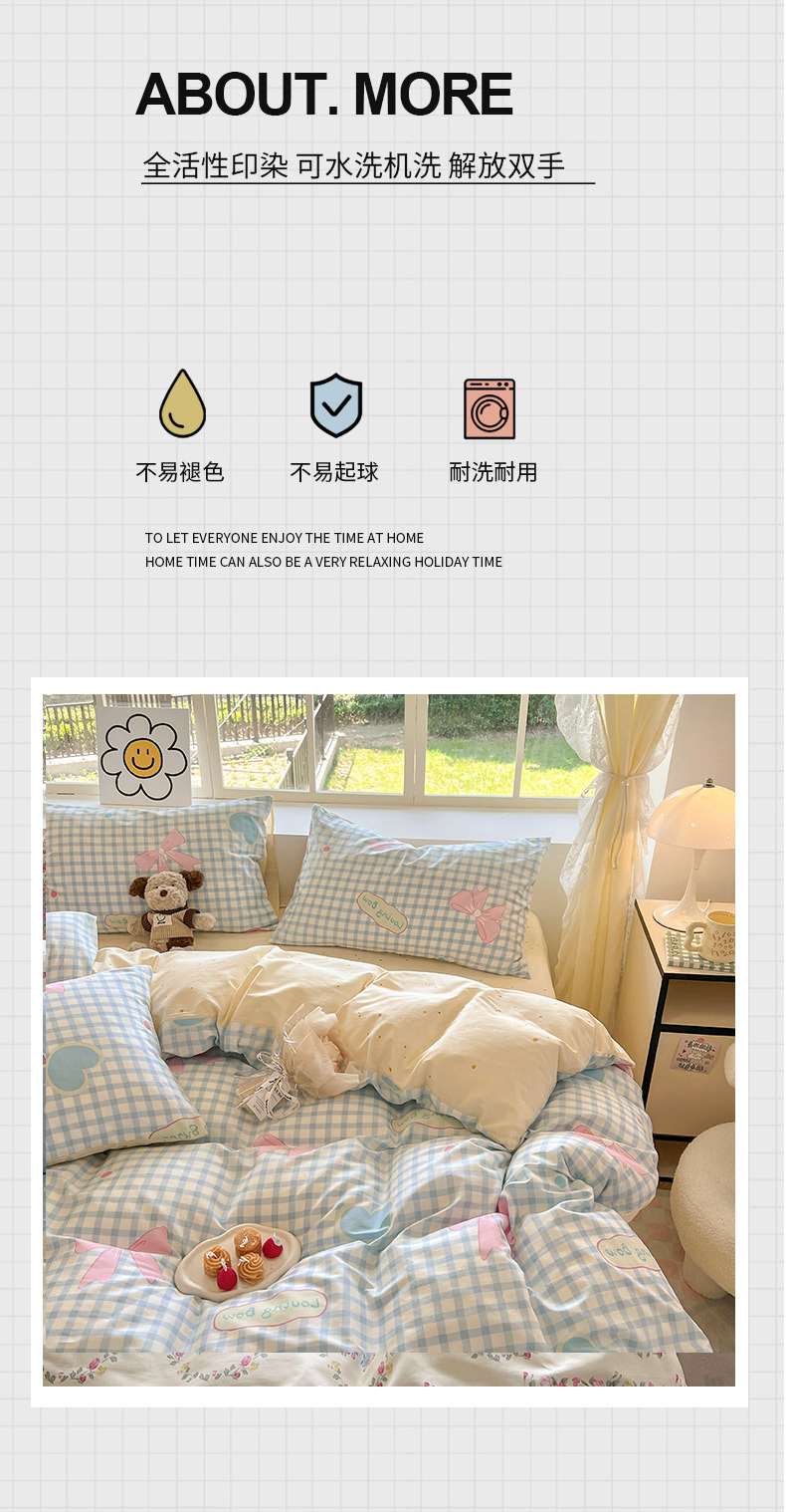 새로운 4 피스 코튼 작은 신선한 학생 기숙사 싱글 더블 4 시즌 유니버설 3 피스 4 피스 도매스토어 가기