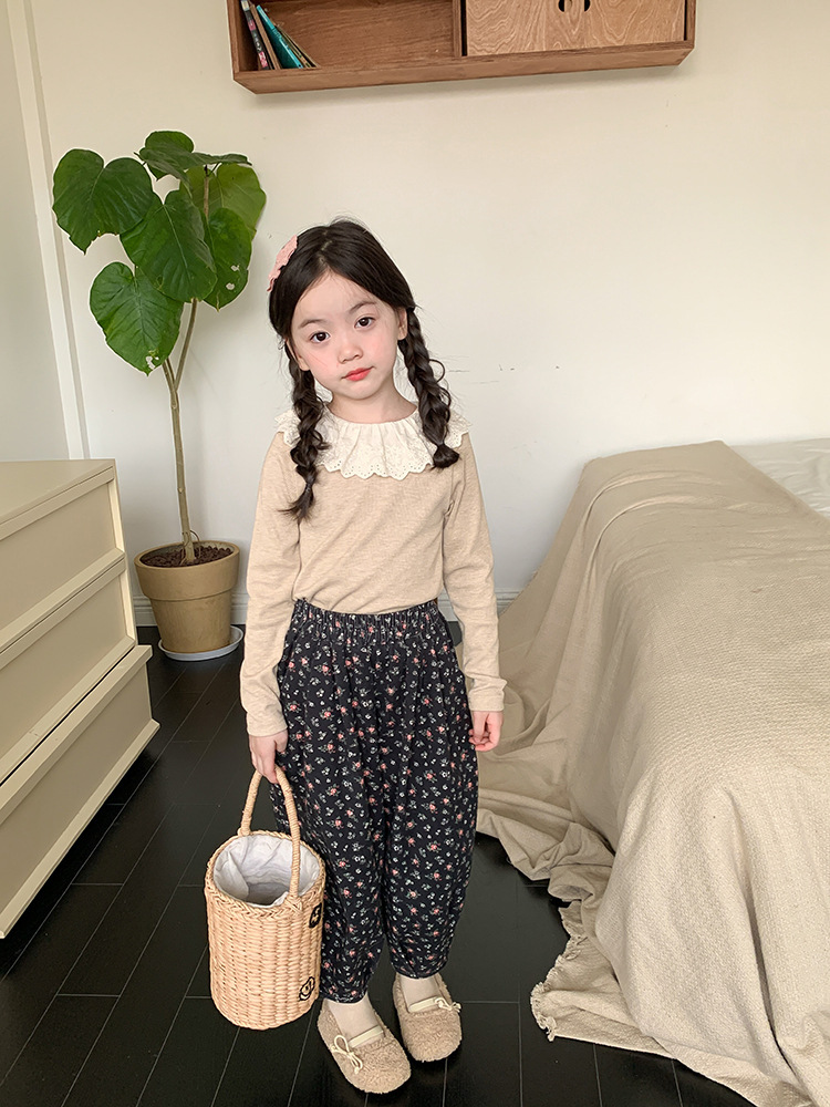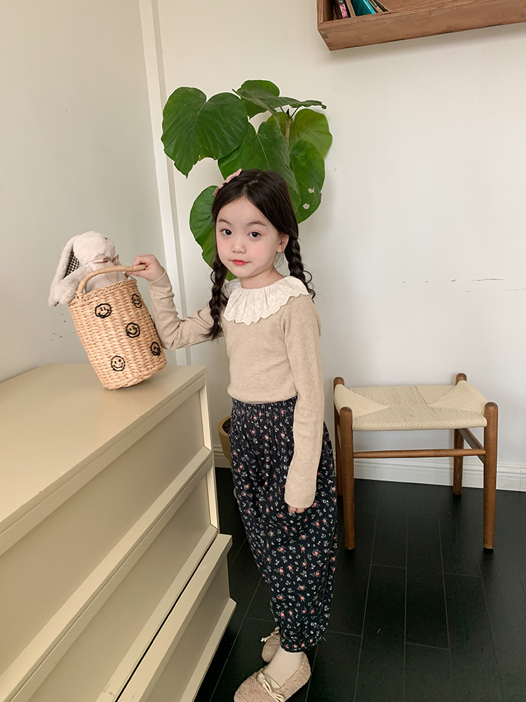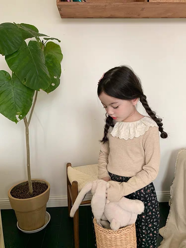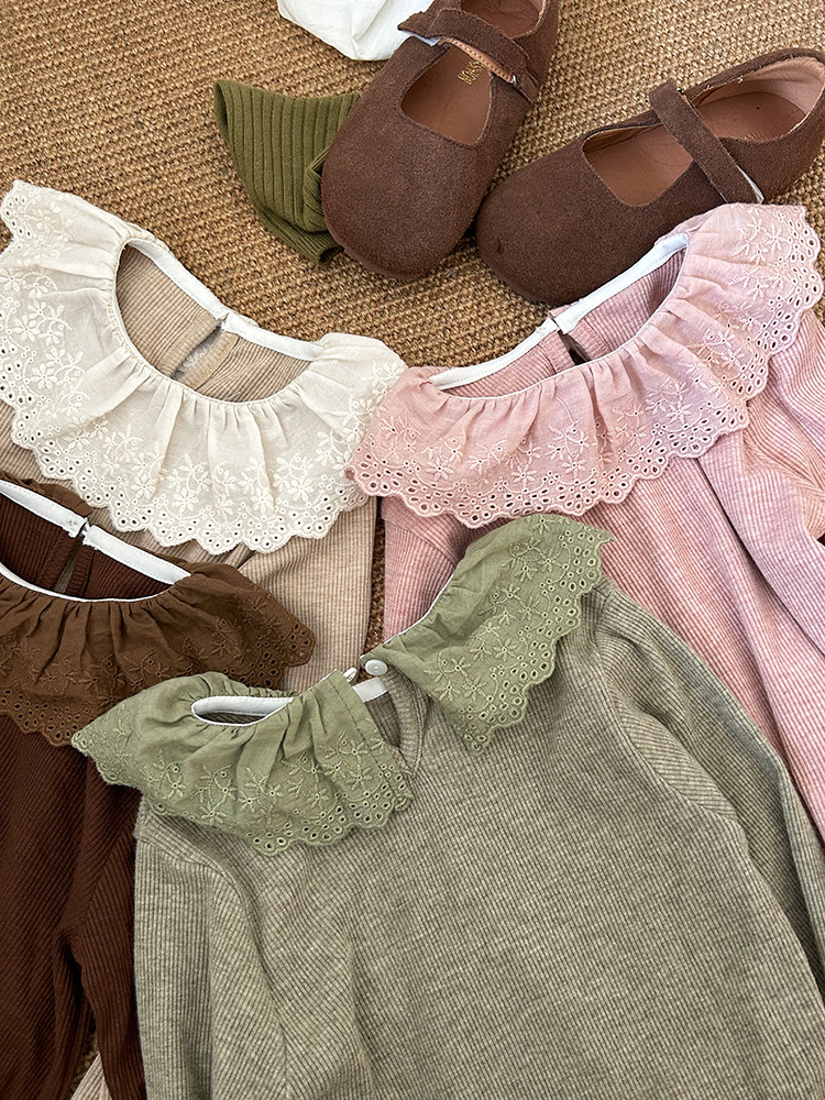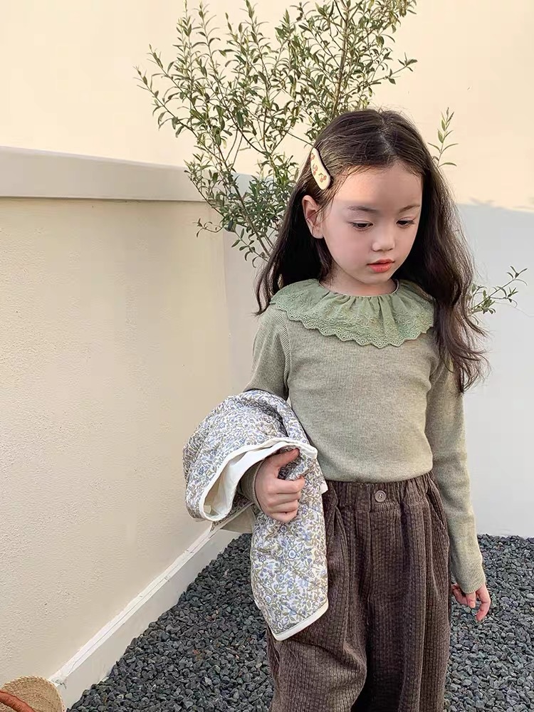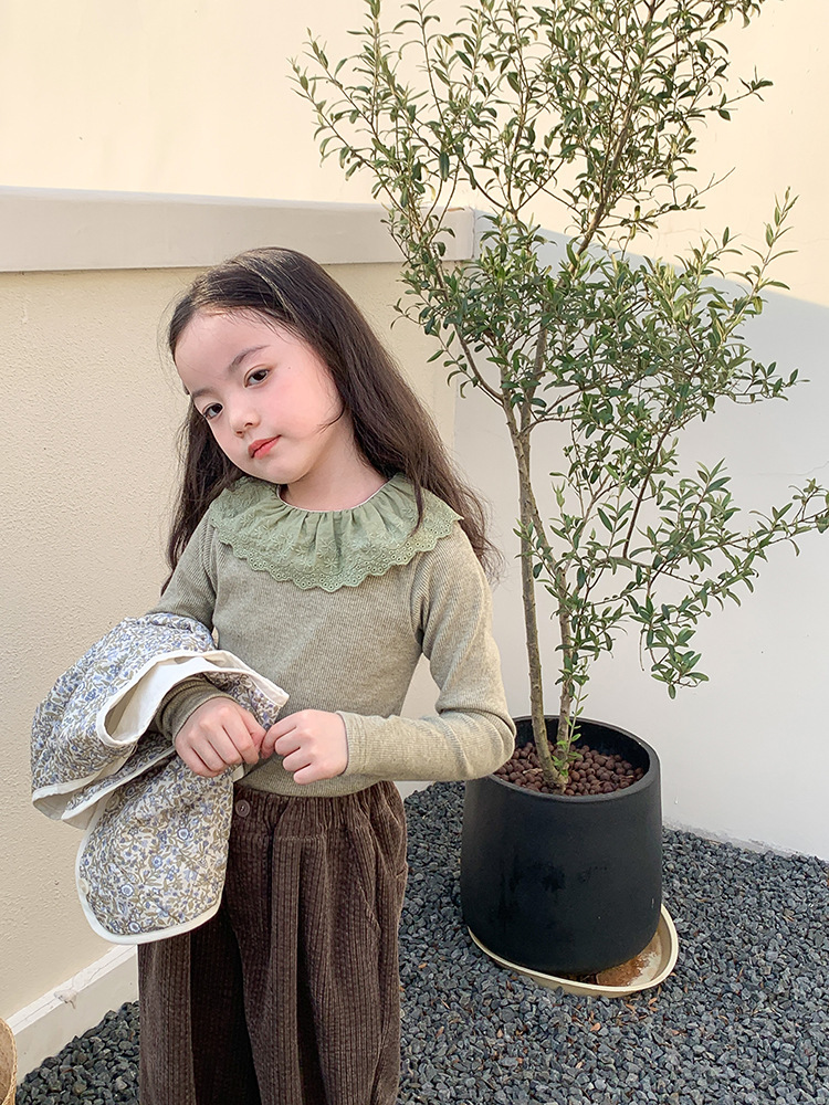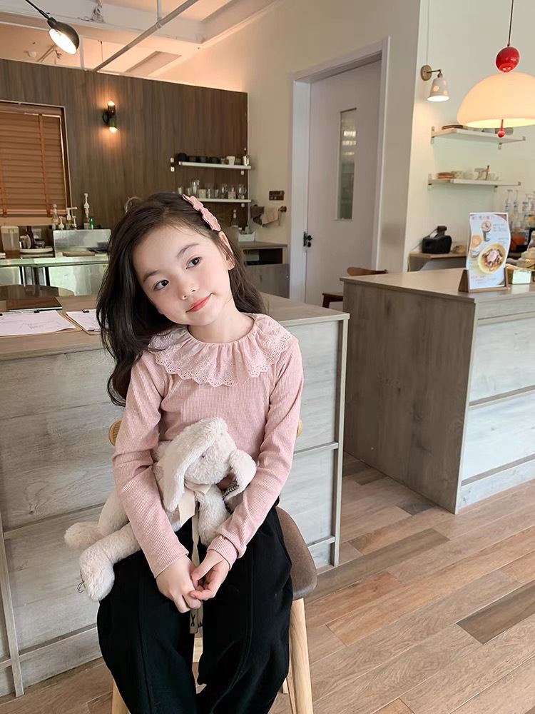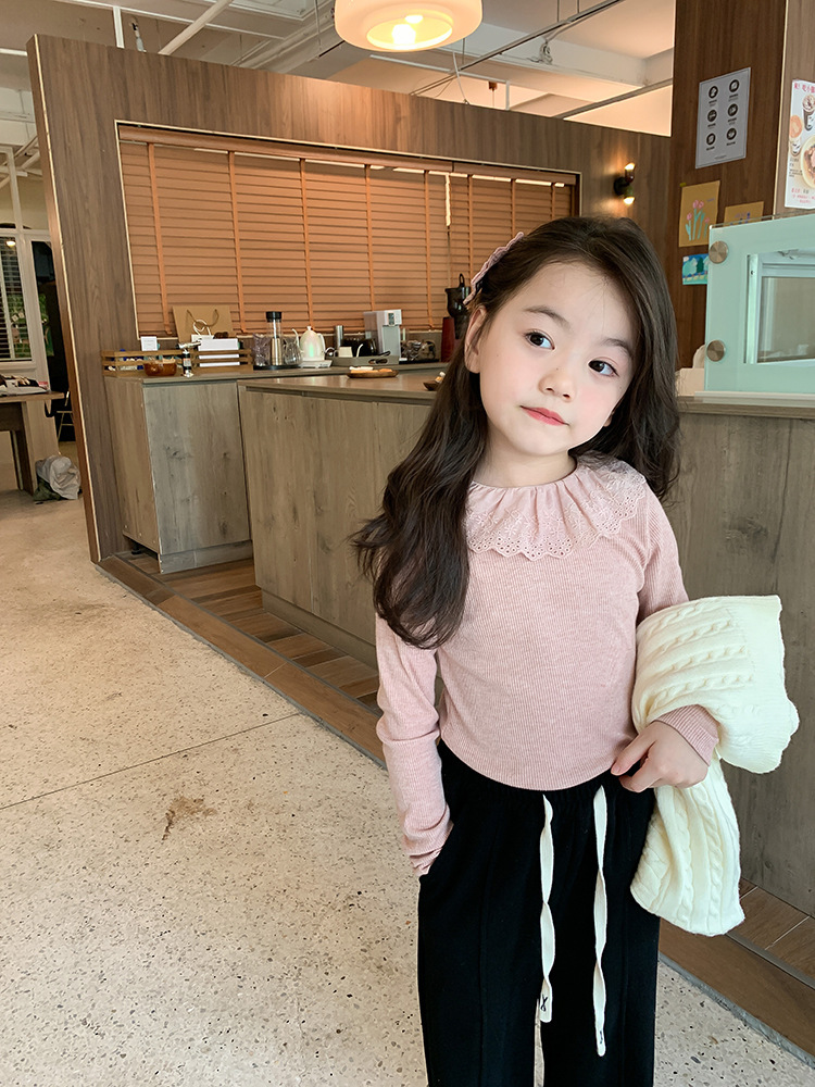 소녀 캐시미어 재킷 봄과 가을 탄성 레이스 칼라 중소 아동복 서양식 긴 소매 바닥 셔츠 도매스토어 가기