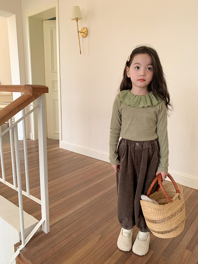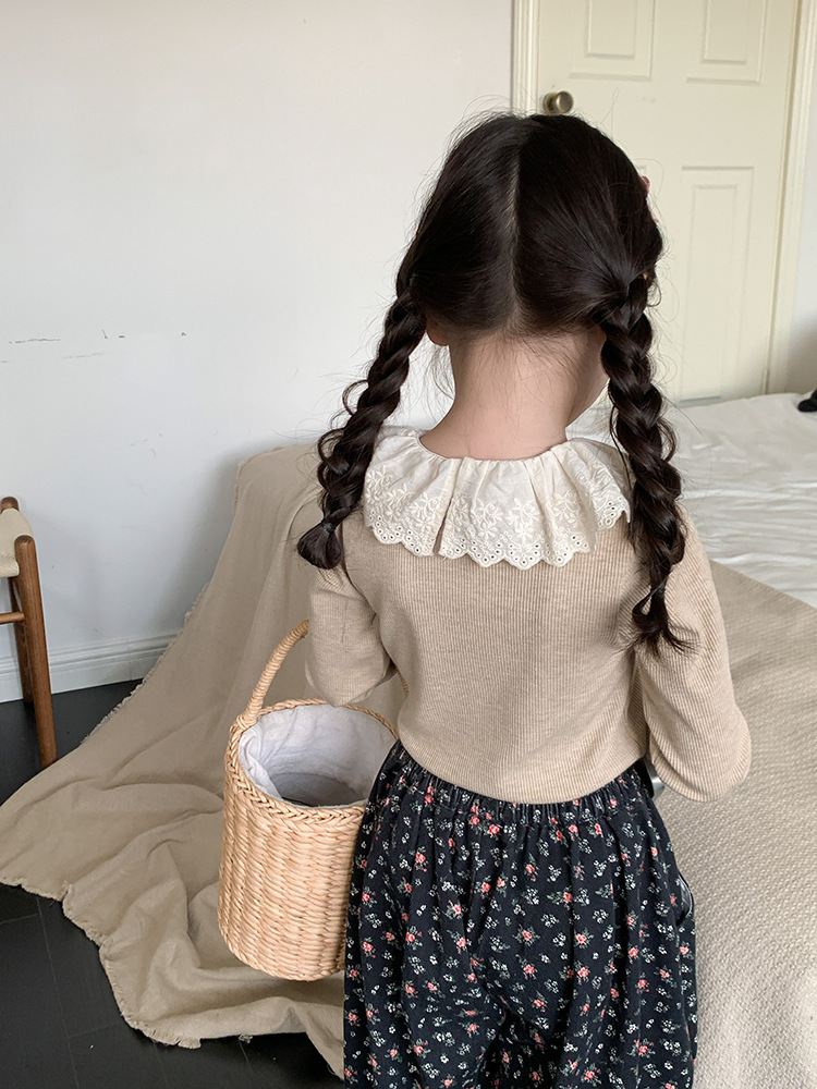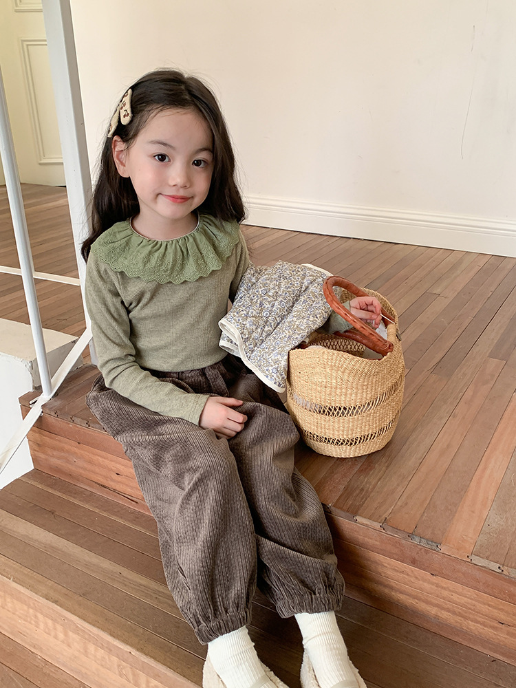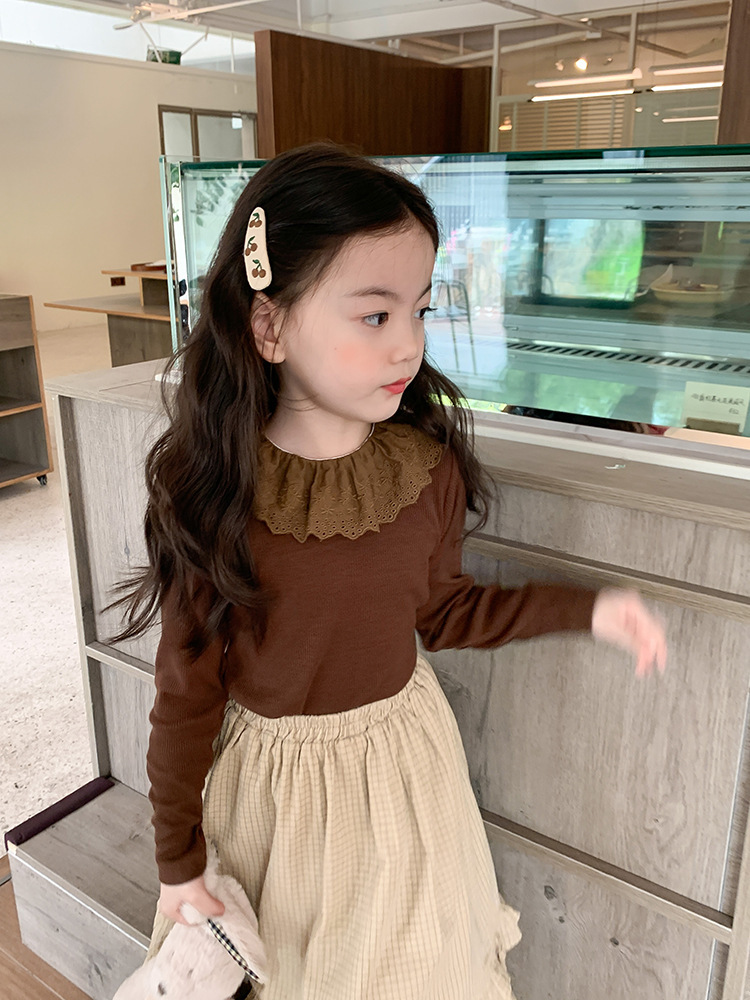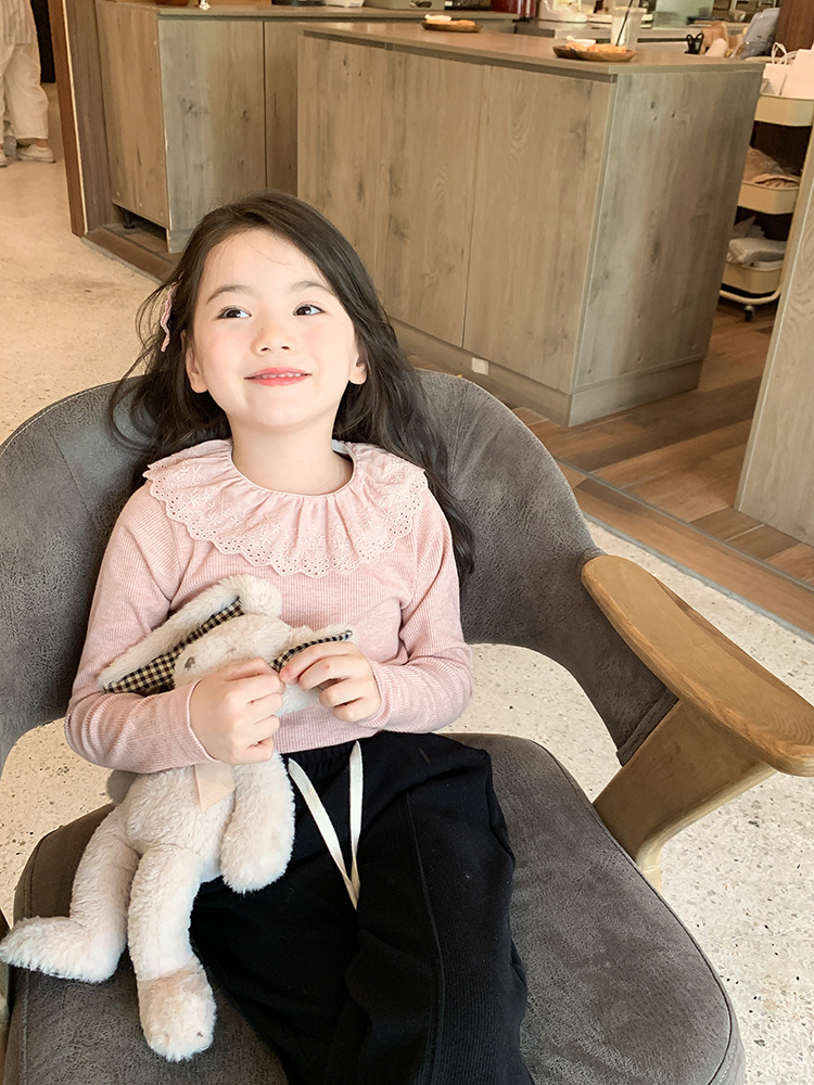 소녀 캐시미어 재킷 봄과 가을 탄성 레이스 칼라 중소 아동복 서양식 긴 소매 바닥 셔츠 도매