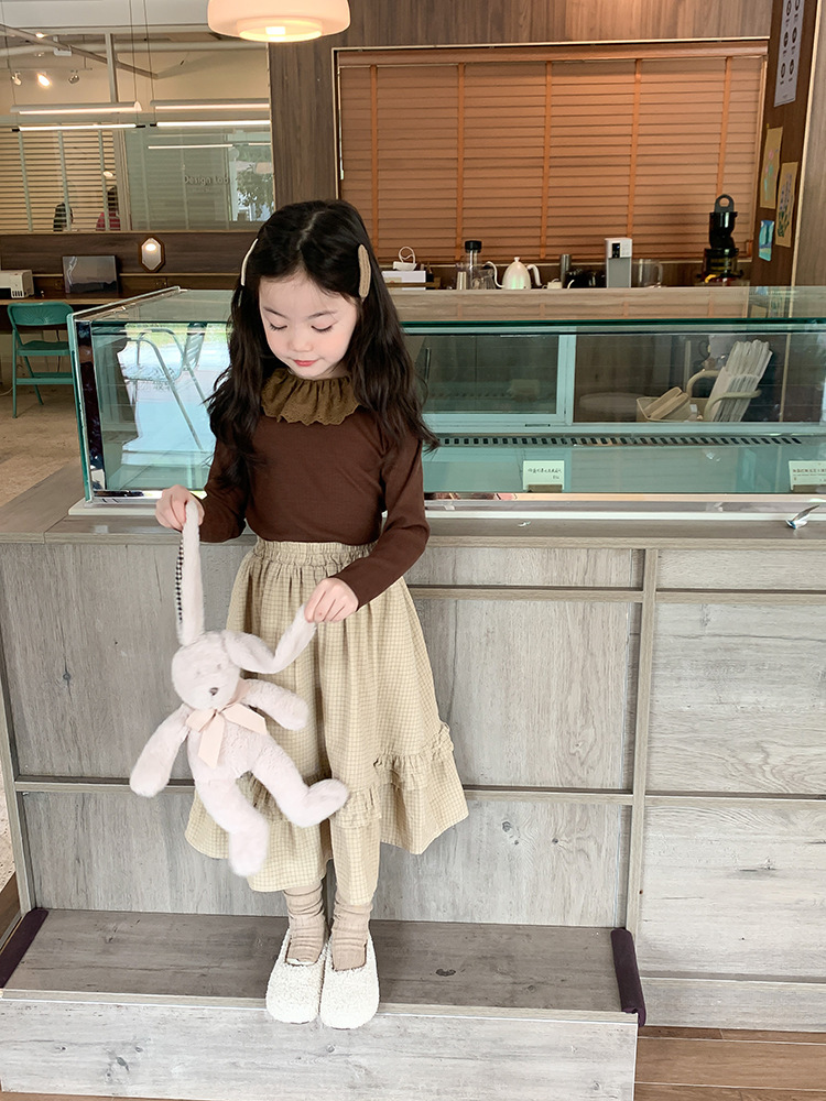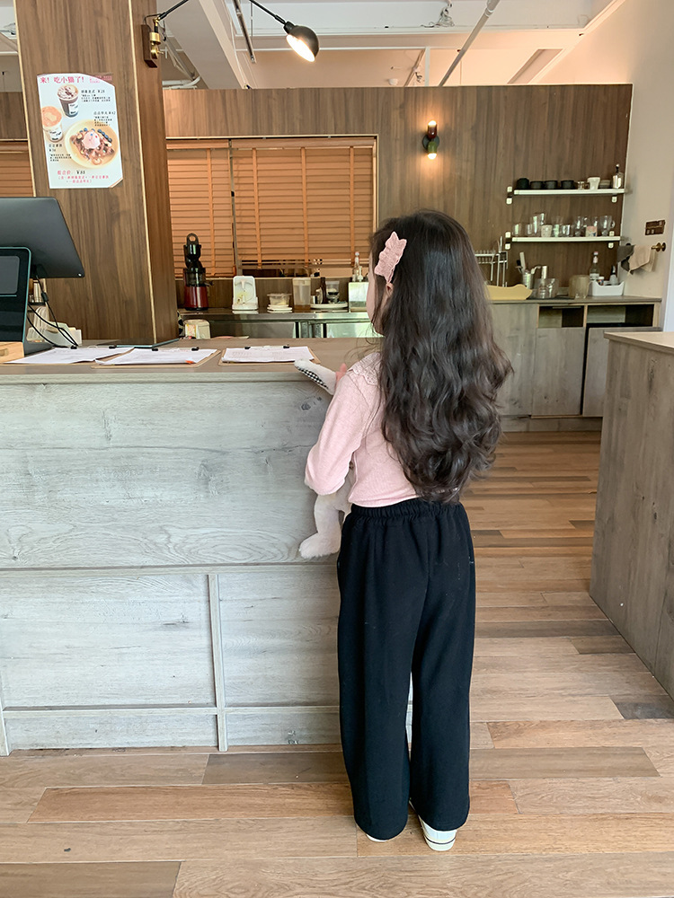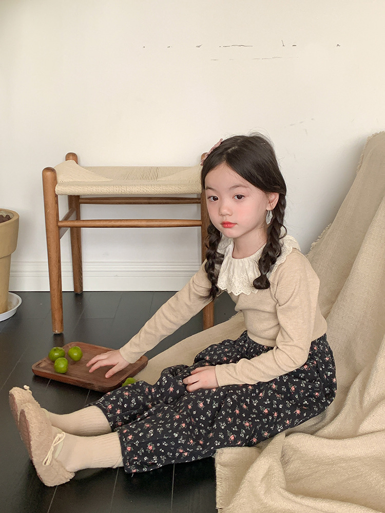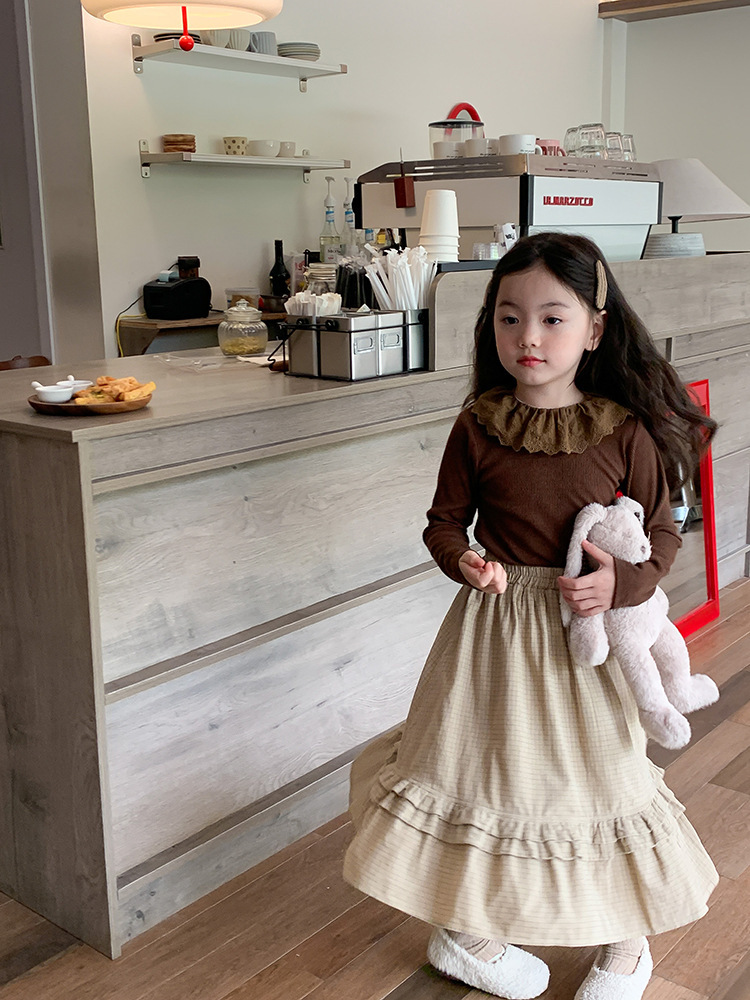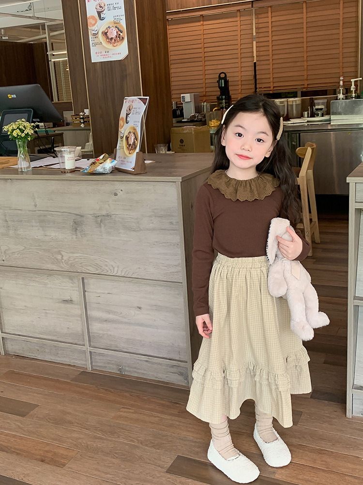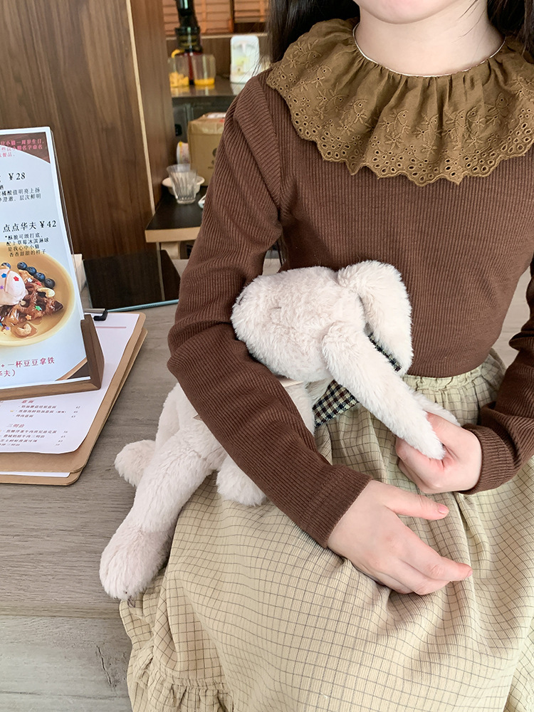소녀 캐시미어 재킷 봄과 가을 탄성 레이스 칼라 중소 아동복 서양식 긴 소매 바닥 셔츠 도매