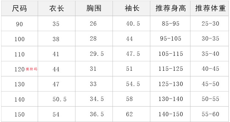 • 사이즈 120의 권장 신장은 110-120cm입니다.