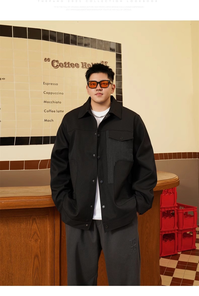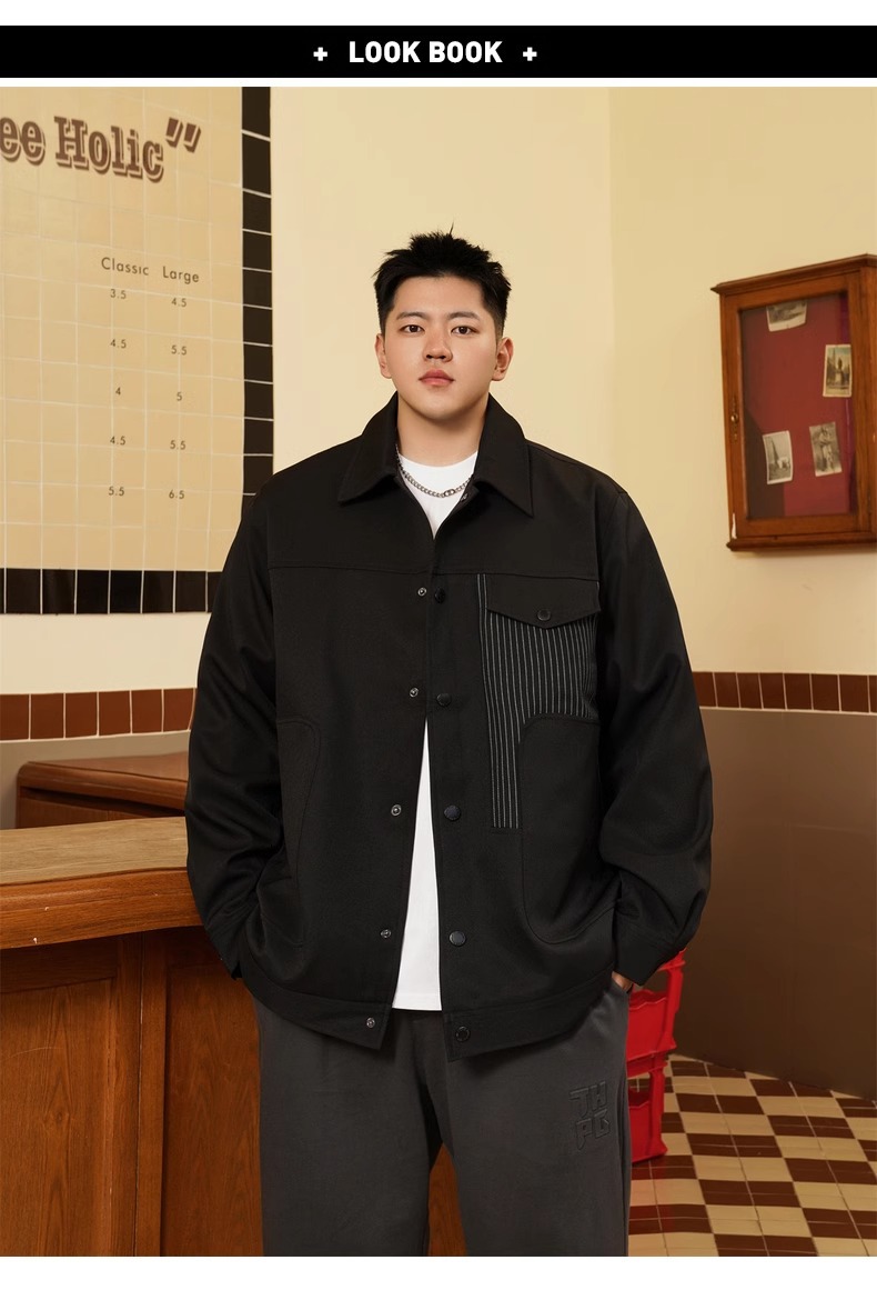 트렌디 브랜드 플러스 사이즈 남성 봄과 가을 새로운 캐주얼 스티칭 코트 랩 뚱뚱한 느슨한 플러스 뚱뚱한 연장 재킷스토어 가기
