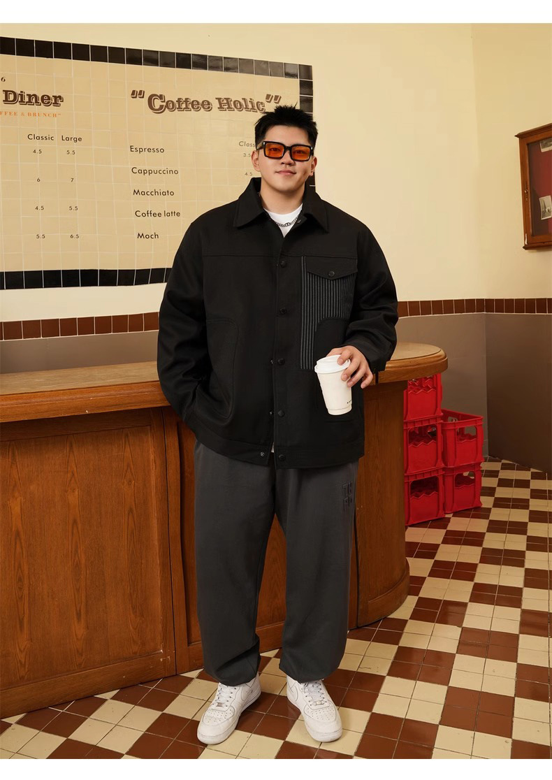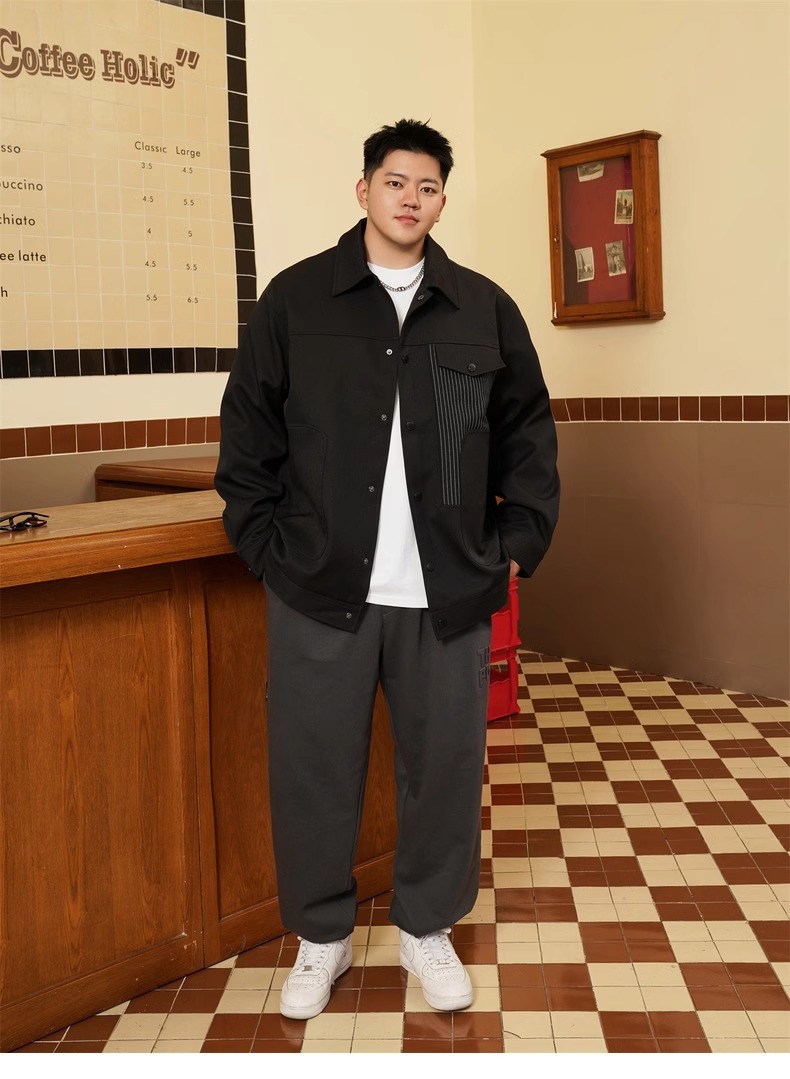 트렌디 브랜드 플러스 사이즈 남성 봄과 가을 새로운 캐주얼 스티칭 코트 랩 뚱뚱한 느슨한 플러스 뚱뚱한 연장 재킷