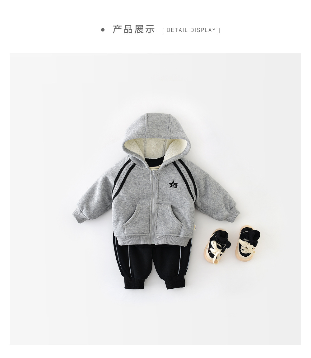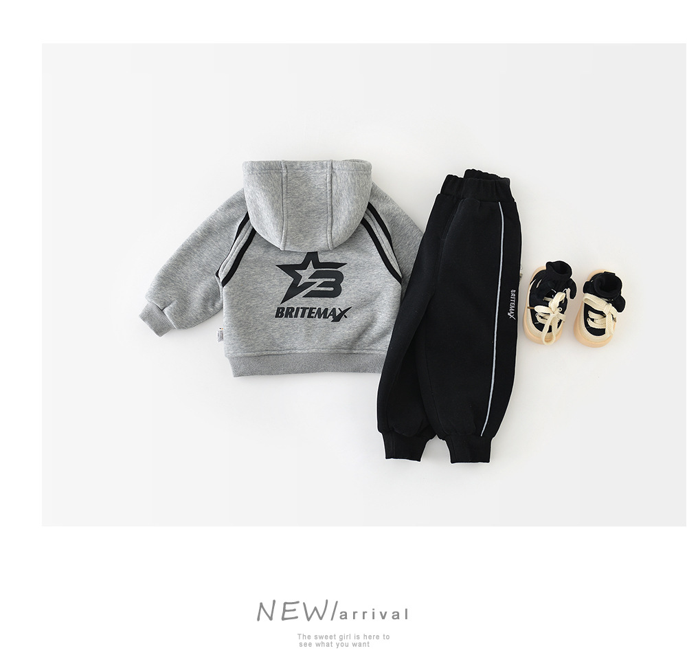 어린이 기모 코트 가을과 겨울 밖으로 아기 따뜻한 후드 코트 아기 캐주얼 기모 바지 95631스토어 가기
