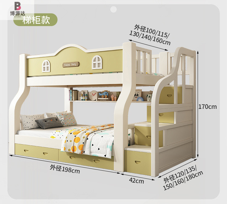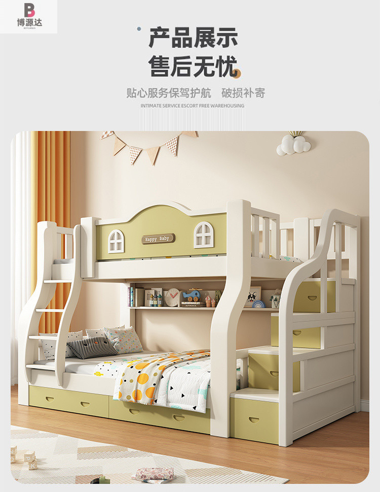 단단한 나무 두꺼운 상하 침대 두꺼운 어머니 침대 작은 아파트 어린이 방 침대 다기능 조합 나무 침대 높고 낮은 침대