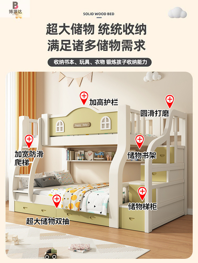 단단한 나무 두꺼운 상하 침대 두꺼운 어머니 침대 작은 아파트 어린이 방 침대 다기능 조합 나무 침대 높고 낮은 침대스토어 가기