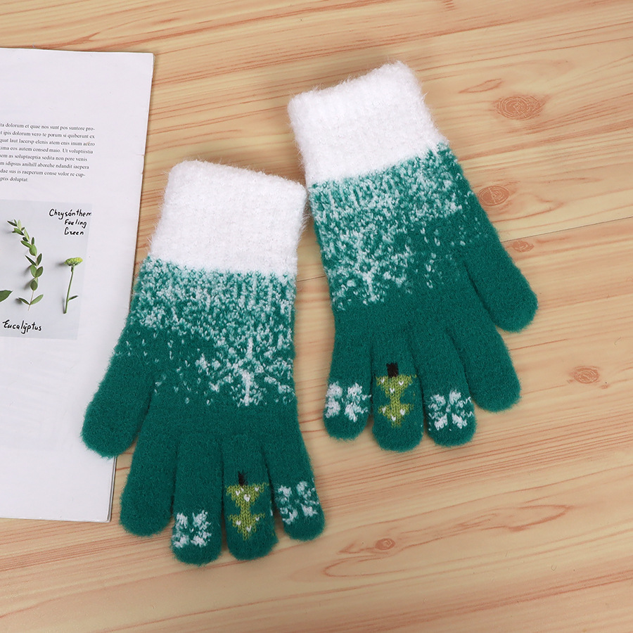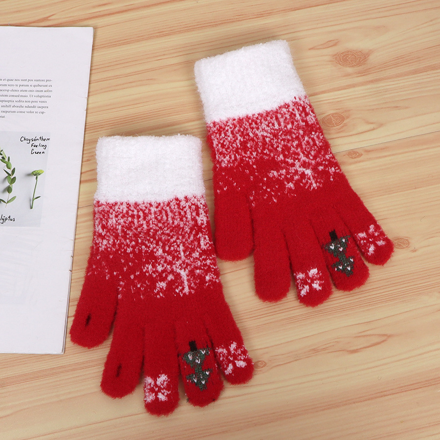 국경 간 크리스마스 빨간 장갑 터치 스크린 힌트 크리스마스 트리 장갑 여성의 겨울 봉제 승마 장갑