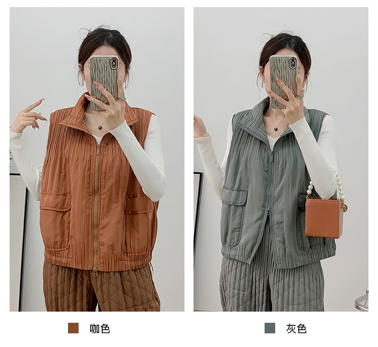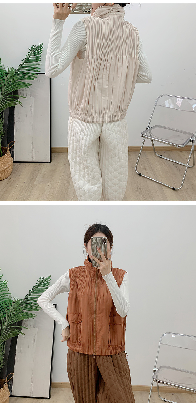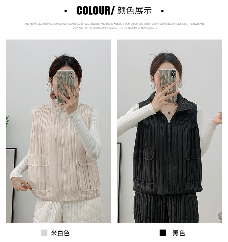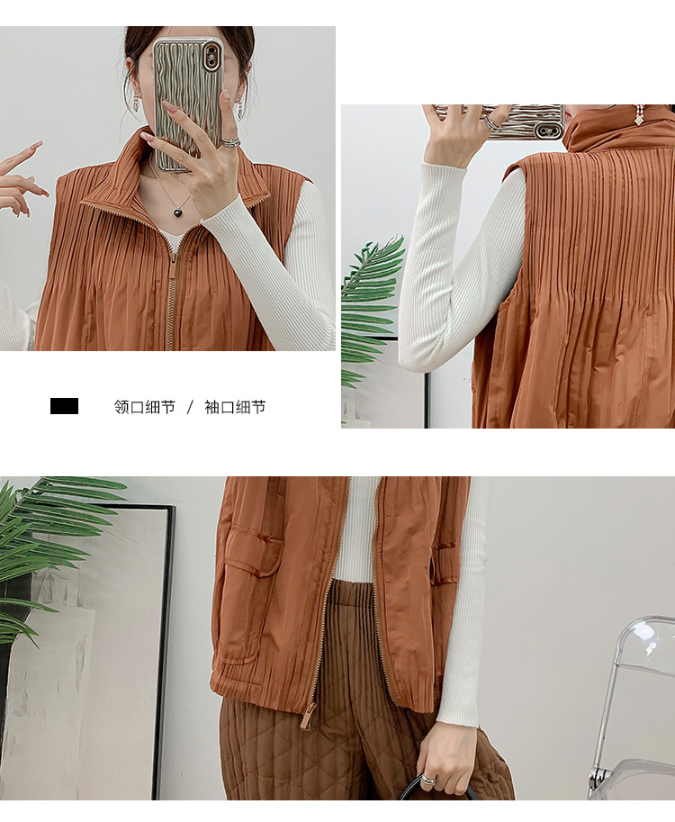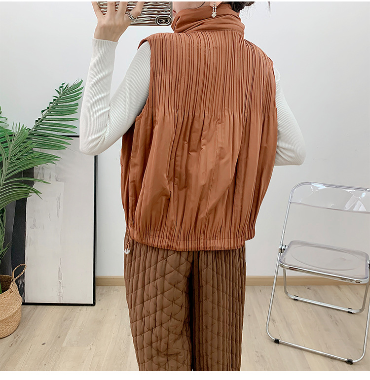 코튼 조끼 여성의 유행 하이 엔드 주름 가을과 겨울 두꺼운 외부 착용 민소매 자켓 루즈 탑